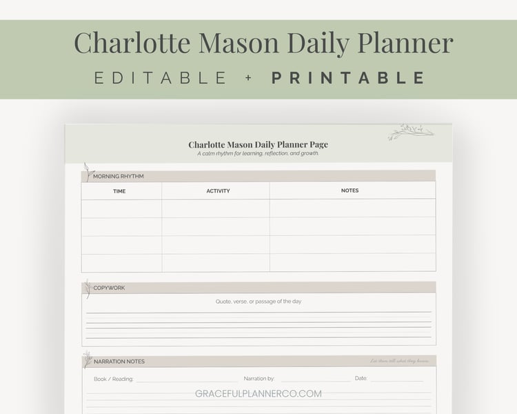 2. Charlotte Mason-Inspired Planner (Printable + Canva Template)
