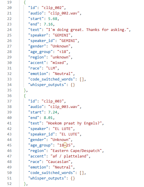 single-sentence cuts side-by-side with human-curated transcript snippets.