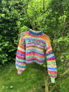 Say hello to your perfect little cropped jumper. Designed to be knitted using up leftover yarn ends (or any kind of DK yarn you like!). Contains all the detailed instructions you need on how to achieve my signature crazy marbled colour effect. She's a cosy, chunky knit on 7mm needles. This is a straightforward pattern that would be suitable for beginners and advanced knitters alike.