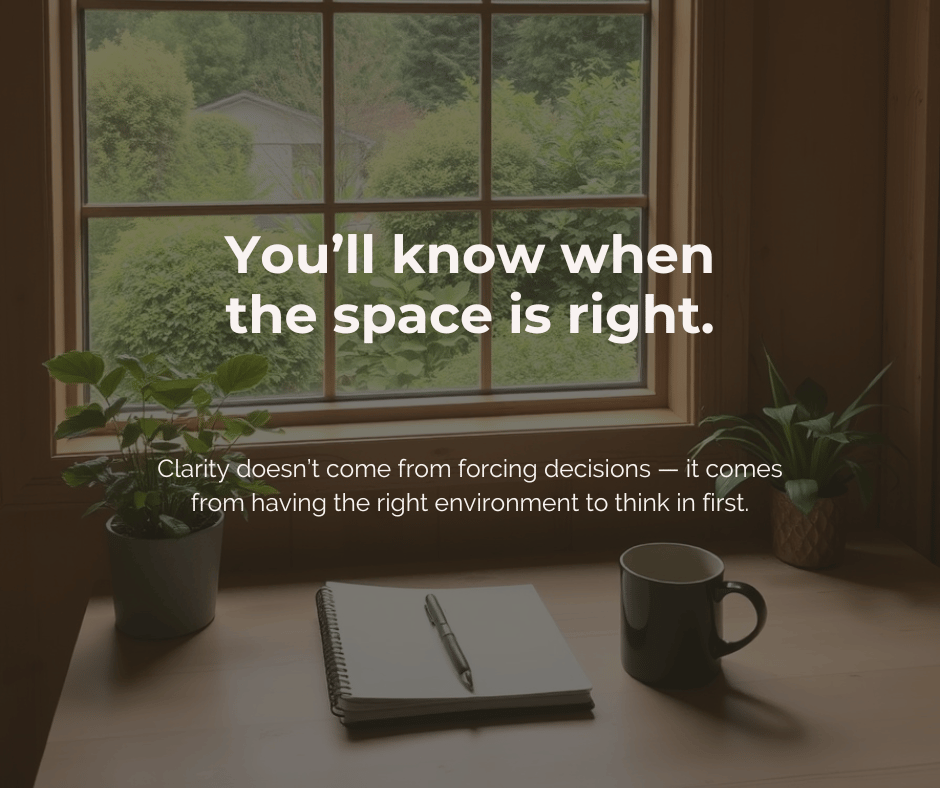 Most professionals and remote workers try to make important decisions in the same environments where they react all day, the same desk, the same screens, the same noise. Over time, this makes clarity harder to reach.