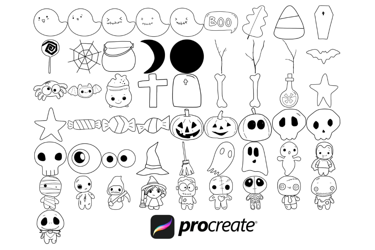 Halloween Elements Set 11 Procreate Brush Stamps, 55 Halloween Element Stamps