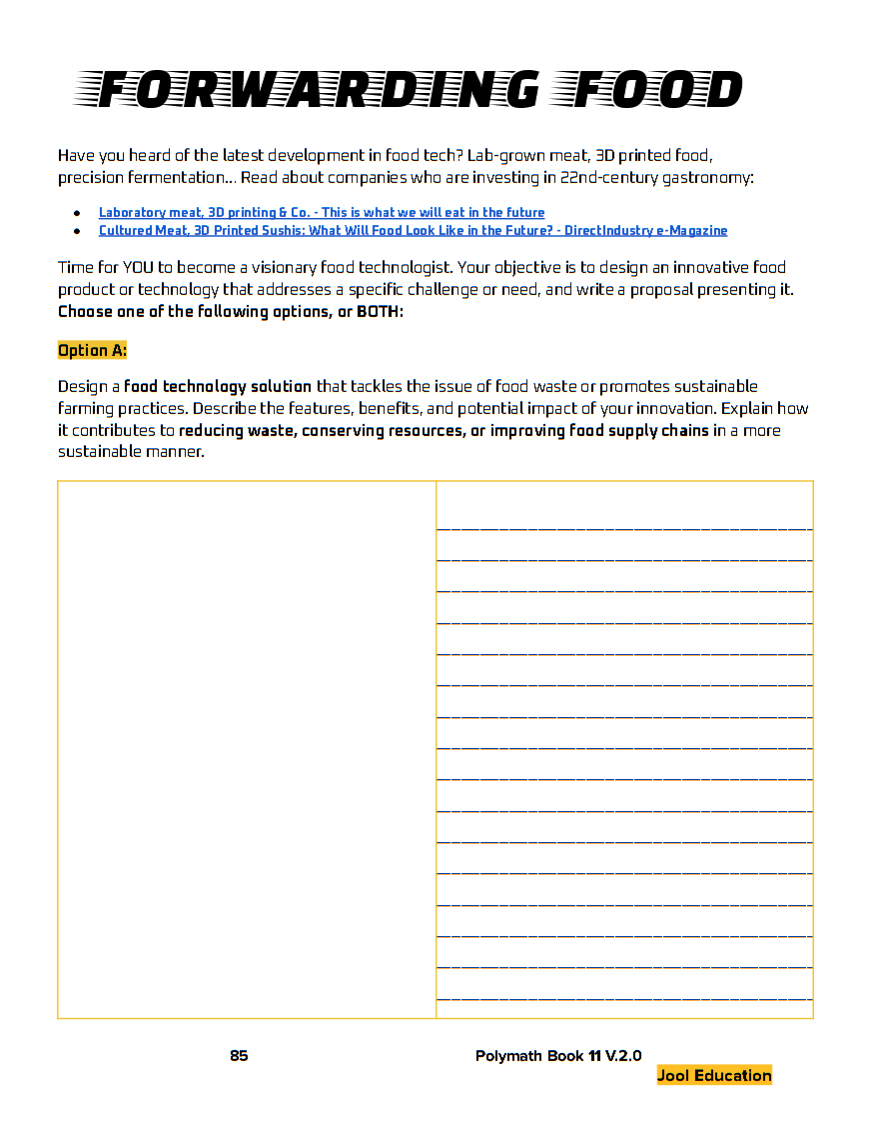 It’s 2050. A sustainable-food systems architect is gliding home in her solar-drift pod after a long day redesigning vertical farms. As she watches the skyhook rotate in orbit, she remembers a moment when, years ago, her teacher handed her a workbook about the future. That was the click, the realisation that the future wouldn’t let her in unless she found the key.