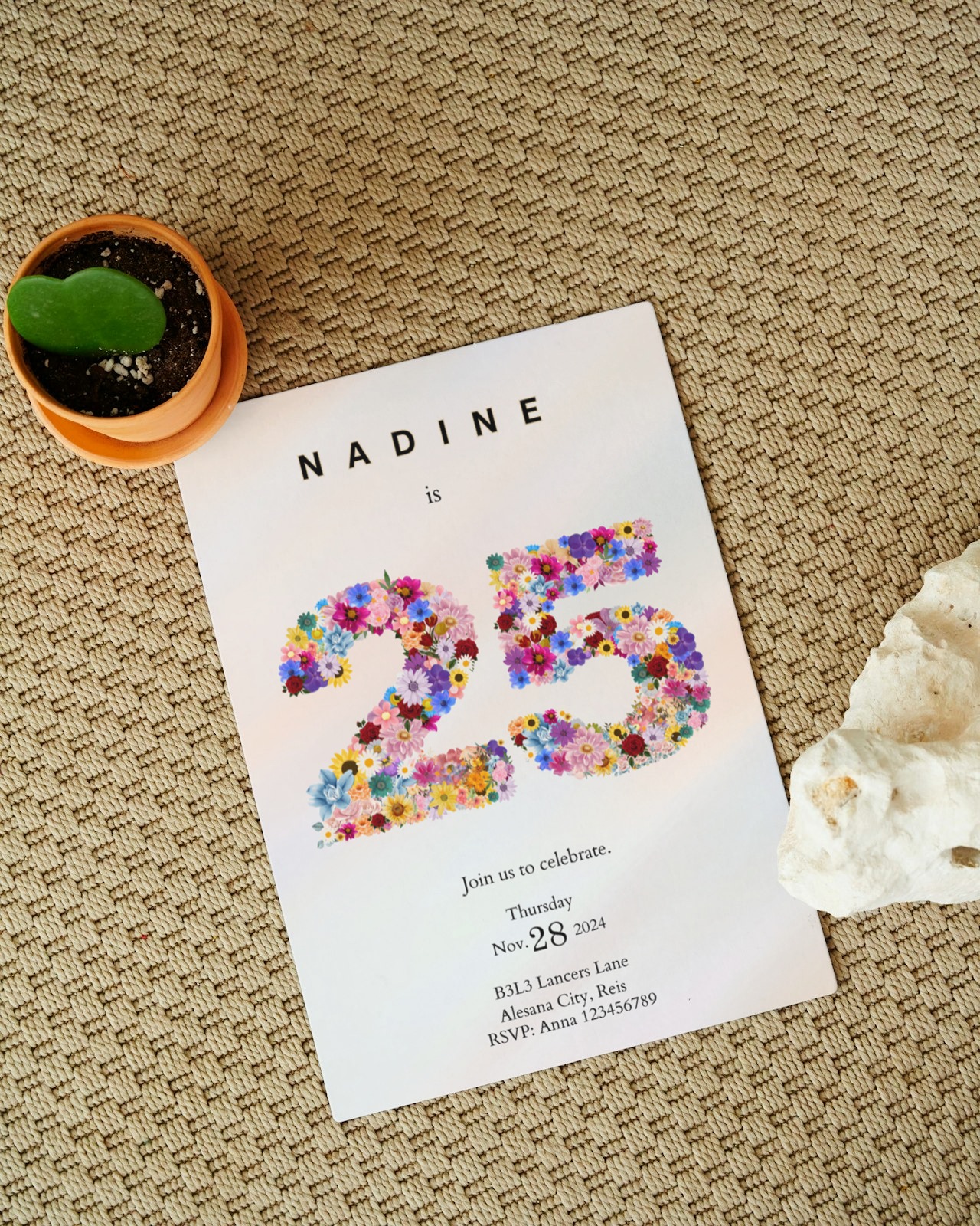 Celebrate a special milestone with this elegant Floral 25th Birthday Invitation featuring a beautifully detailed number “25” made of colorful flowers. Perfect for women’s birthday parties, milestone celebrations, and stylish gatherings, this timeless design adds a soft, modern touch to any birthday event.