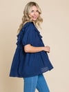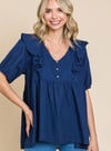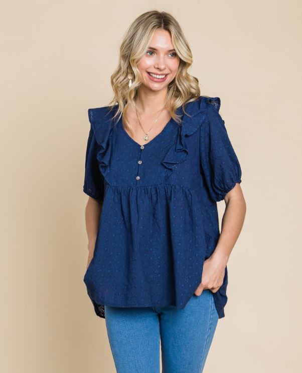 Cotton Eyelet Lace Ruffle Detailed Top - Navy / $25.99