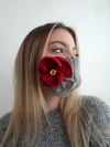 The photo tutorial for this mask includes the pattern for the mask along with 3 options for closure, 5 flower patterns with variations suggested and 2 leaves patterns. It is 8 pages long. It contains numerous pictures that accompany the patterns for easier comprehension. I have also included the pattern for the poppy as well as the instructions how to line the mask.