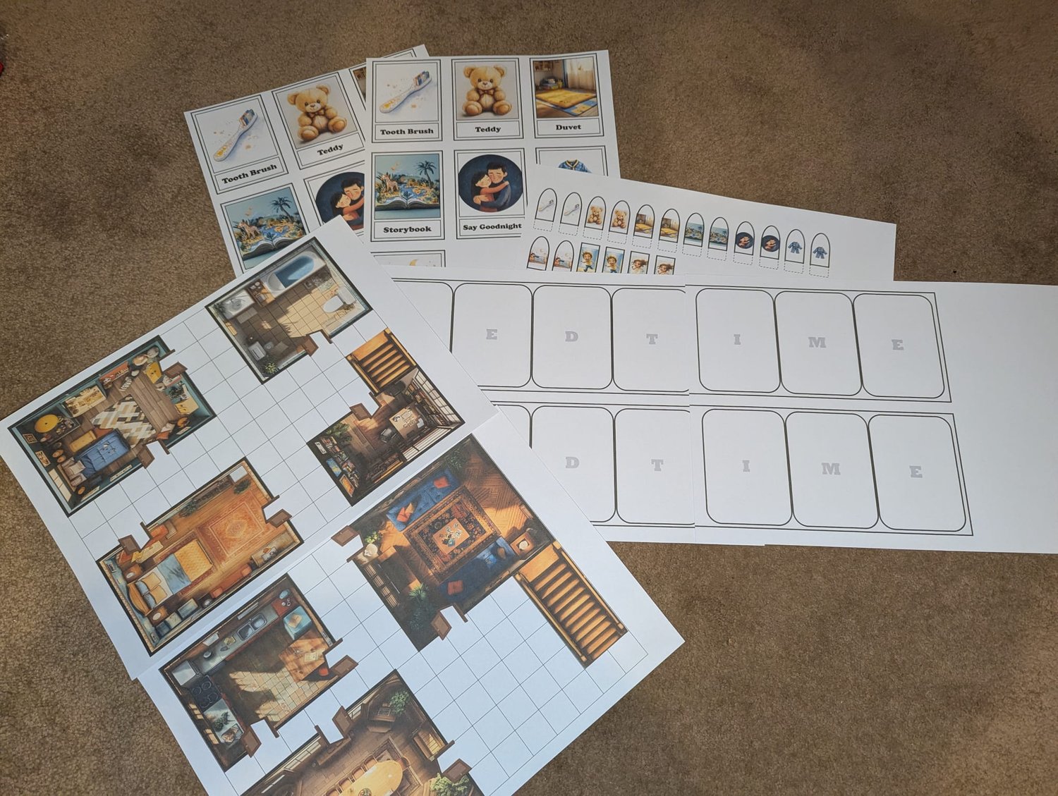 This is a game designed discussion and learning bed time routines. Decide what order you will complete the bed time tasks, place them around the house and race to get them.