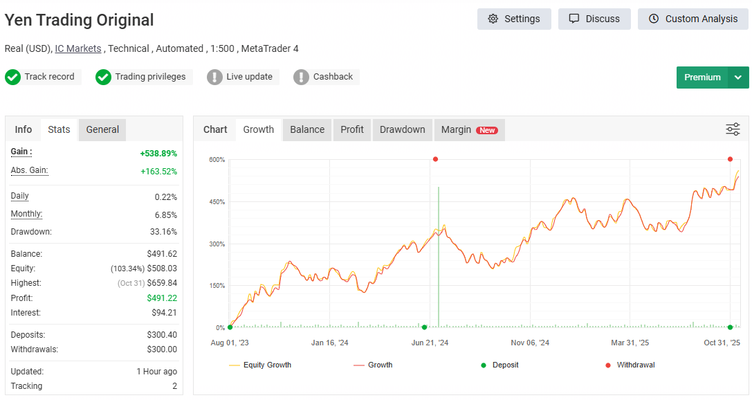 Yen Trader is designed for traders who want a stable, rule-based, low-frequency strategy with professional controls.