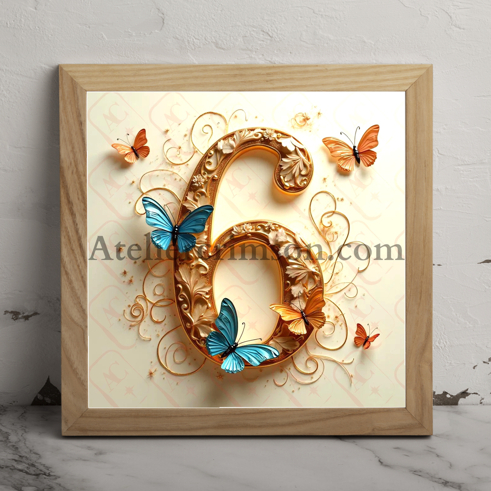 Number 6 golden luxury butterfly .Download Now this high quality AI-generated image, perfect for adding a touch of luruxy and creativity to any space.