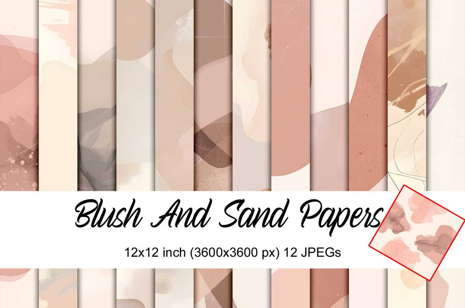 Step into a world of soft textures and sun-kissed tones! This Blush and Sand collection features 12 unique digital papers that blend delicate pastel pinks with warm, sandy neutrals. Unlike bold brush strokes, these designs offer a softer, more fluid abstract watercolor look that is perfect for a refined boho aesthetic.