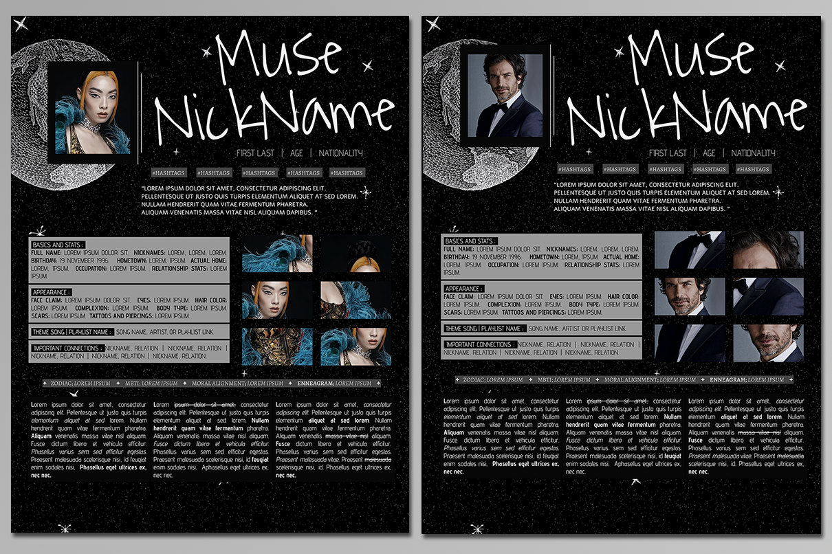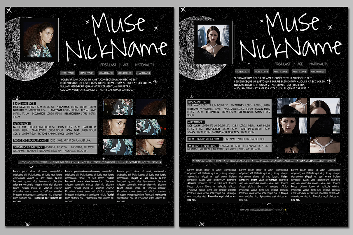 And for my second template, I present to you Circinus. This google docs template is a multi muse, made for you to showcase your particular universe of characters. Like my first template, most of the elements are editable, so you can customize it however you like.