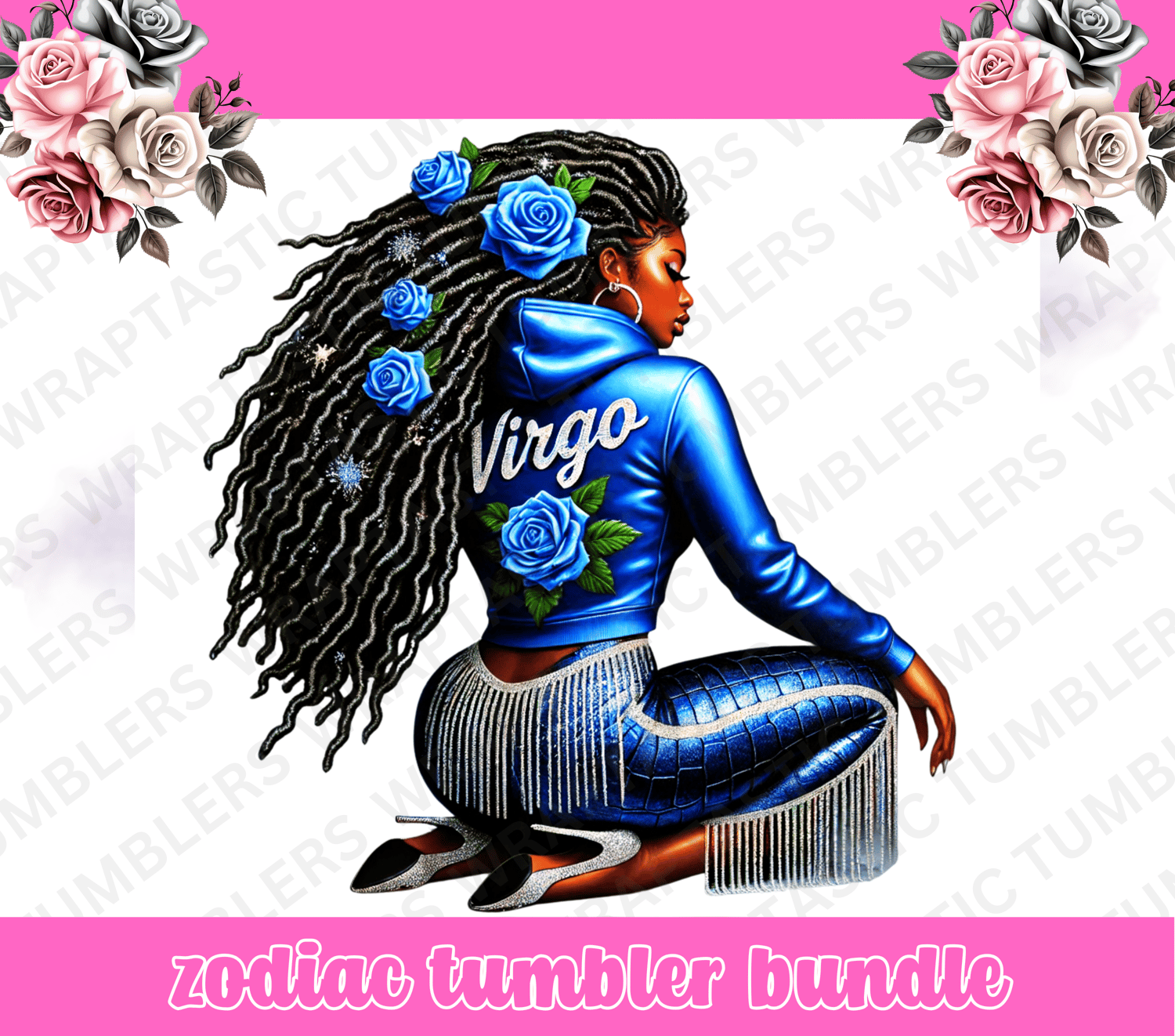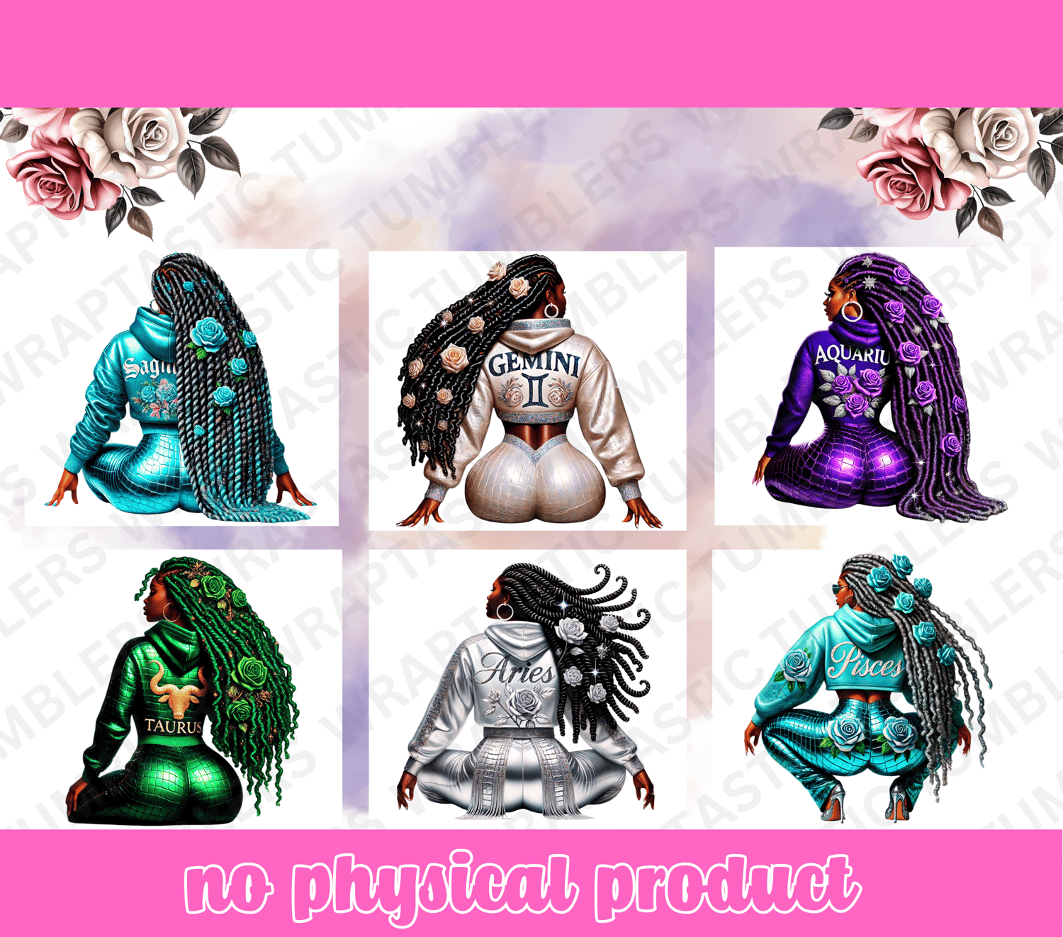 12 Zodiac Tumbler Wrap PNG Bundle, Black Women Astrology Sublimation Designs, Horoscope Birthday Shirt Mug Clip Art Bundle Digital Download