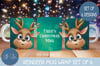 ⭐️ Christmas Mug wraps featuring a cute reindeer on either side, with room to add text.
