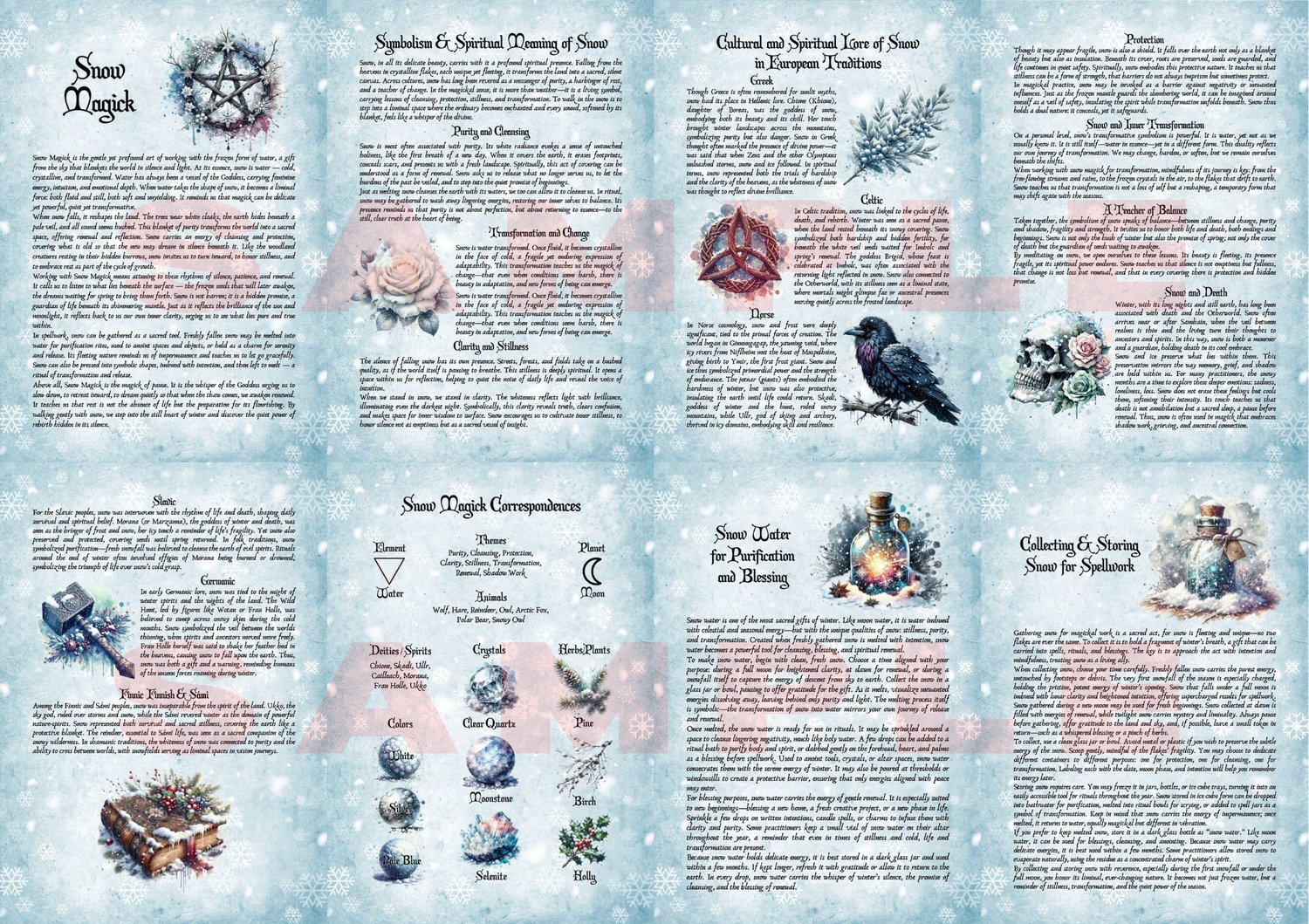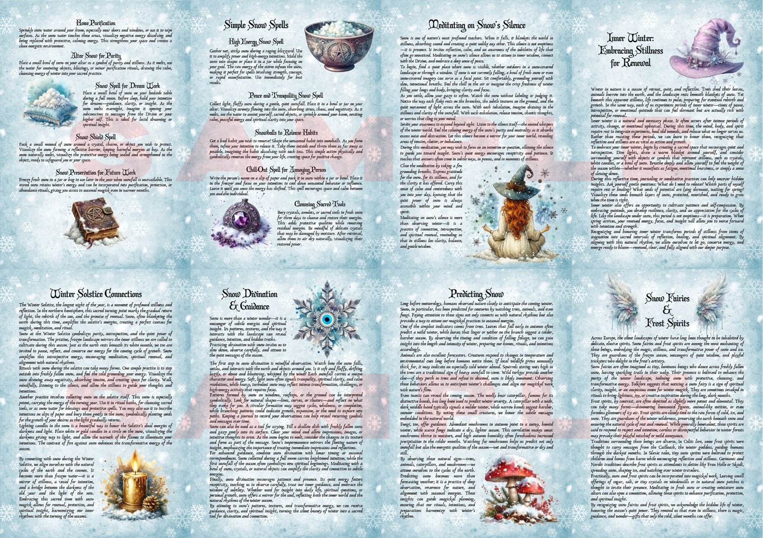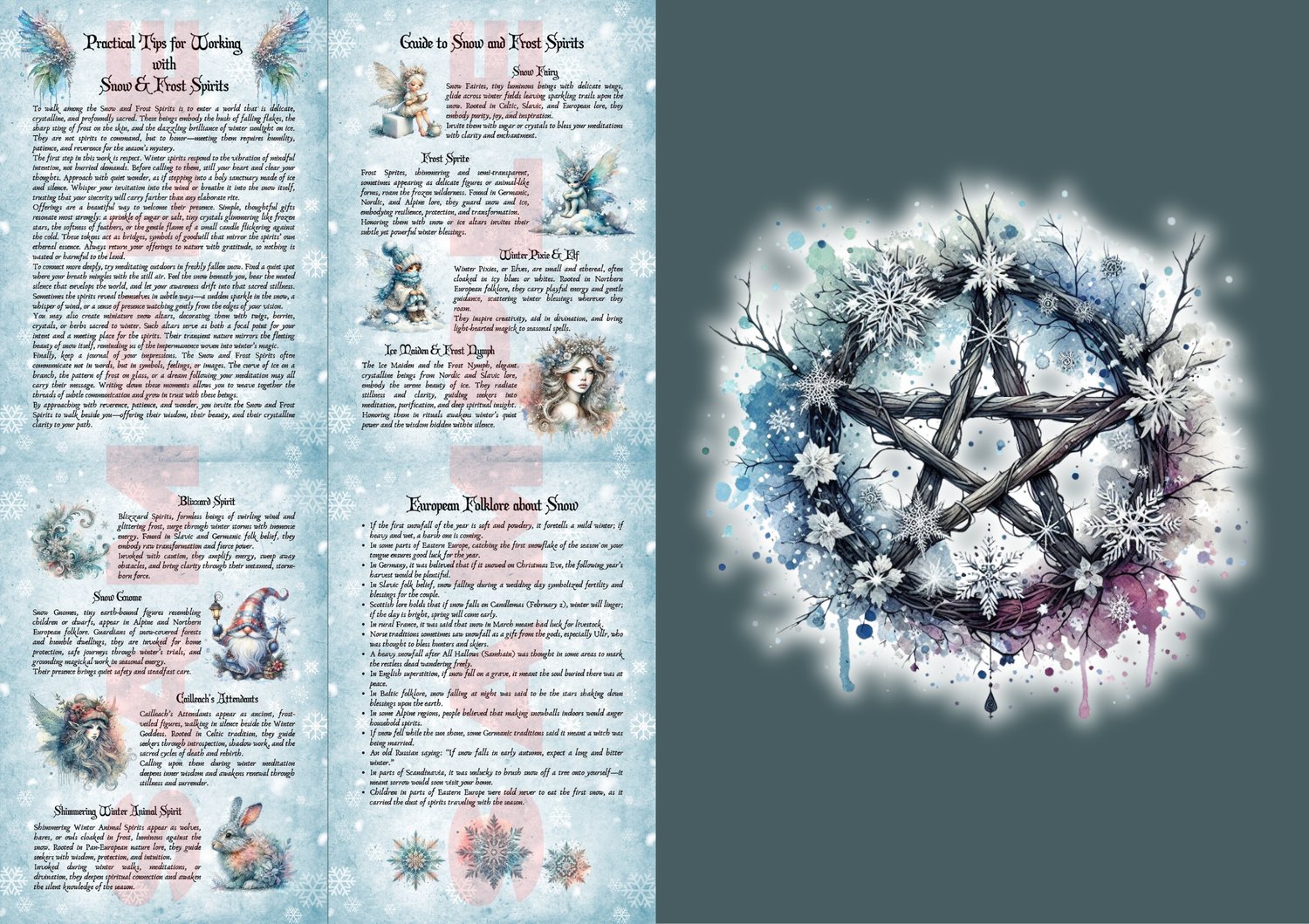 Discover the serene power of Snow Magick with this enchanting set of printable grimoire pages, beautifully illustrated to capture winter’s sacred essence.
