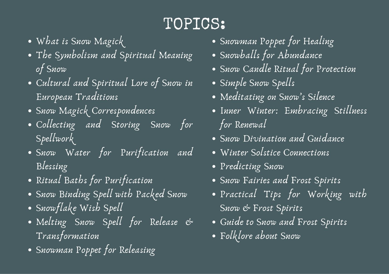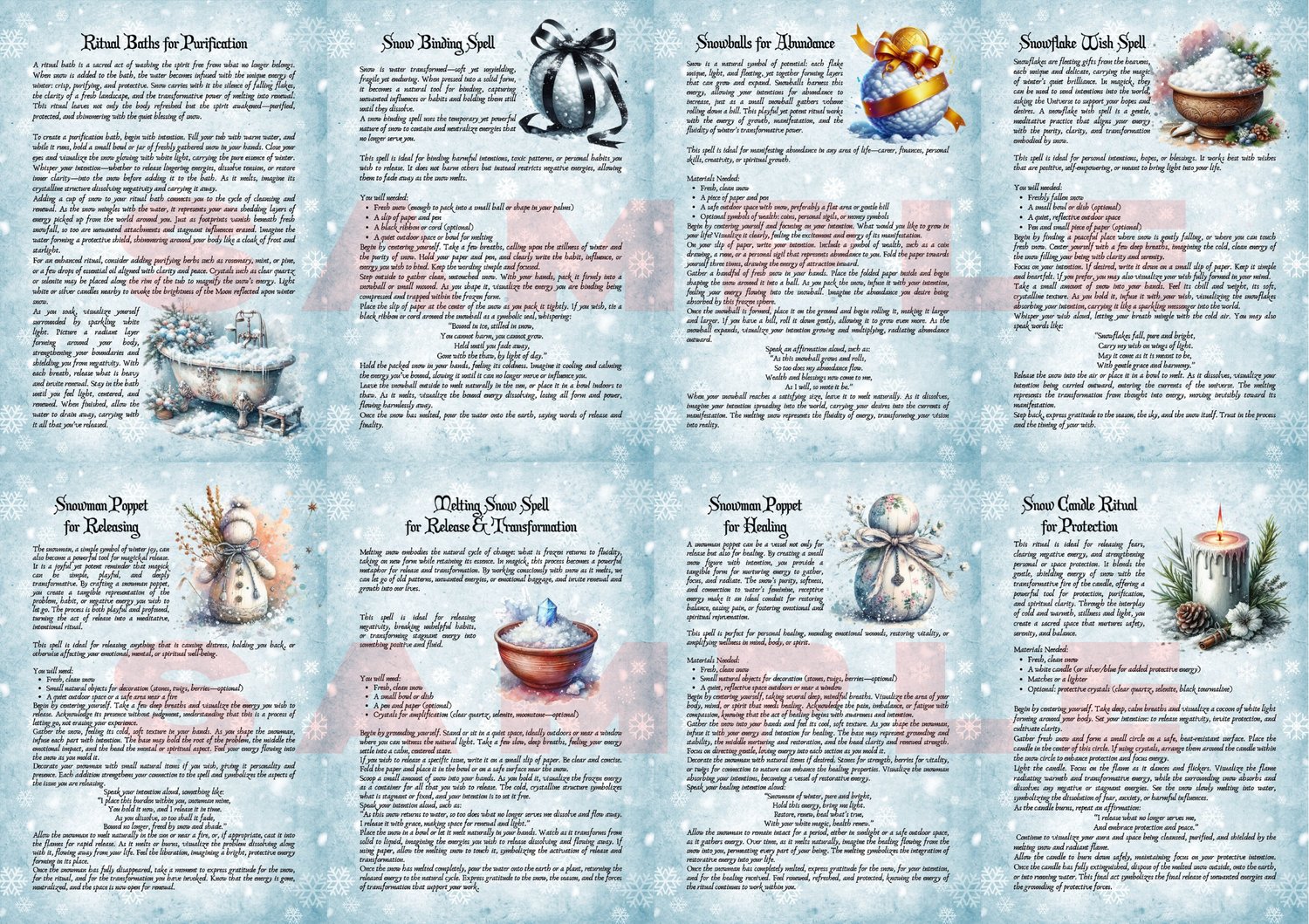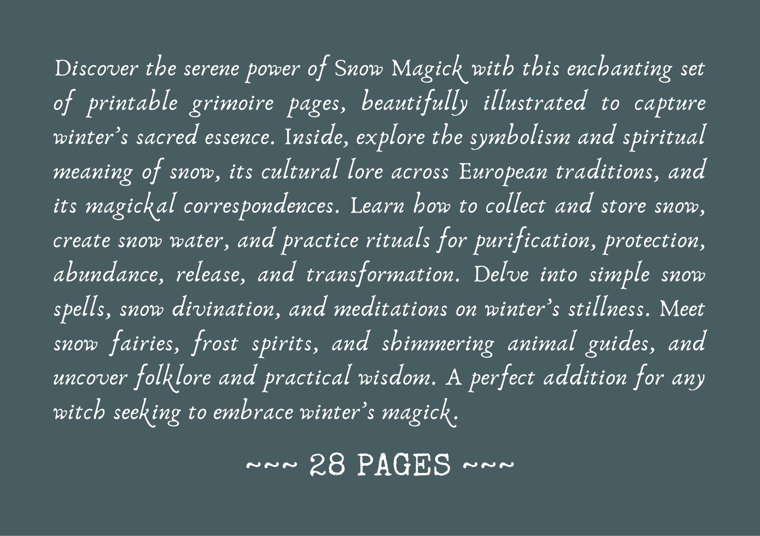 Discover the serene power of Snow Magick with this enchanting set of printable grimoire pages, beautifully illustrated to capture winter’s sacred essence.