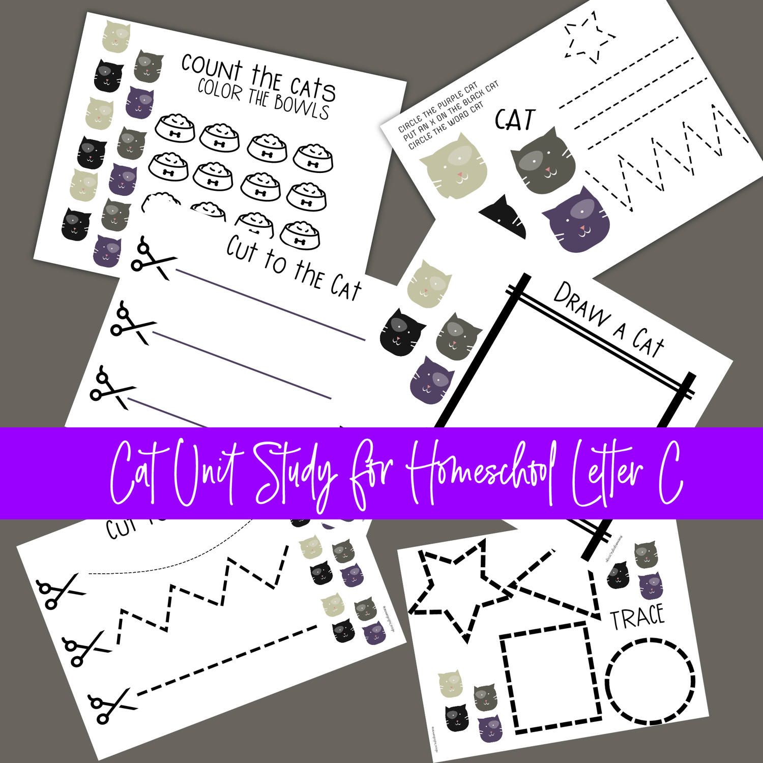 C is for Cat worksheets for kids is a fun and educational way to practice Tracing, Drawing, Counting and Shapes. You will recieve a printable PDF with 6 Sheets