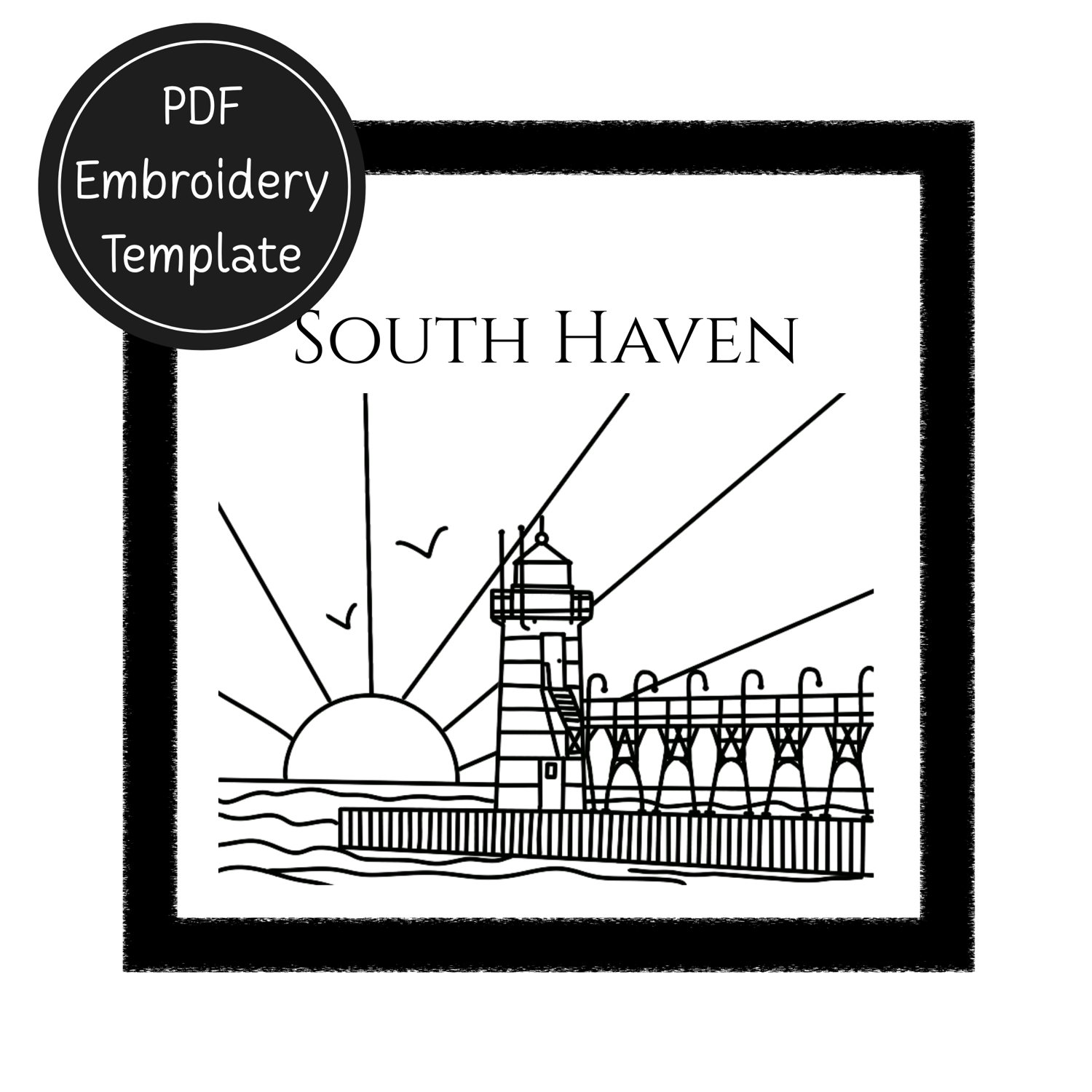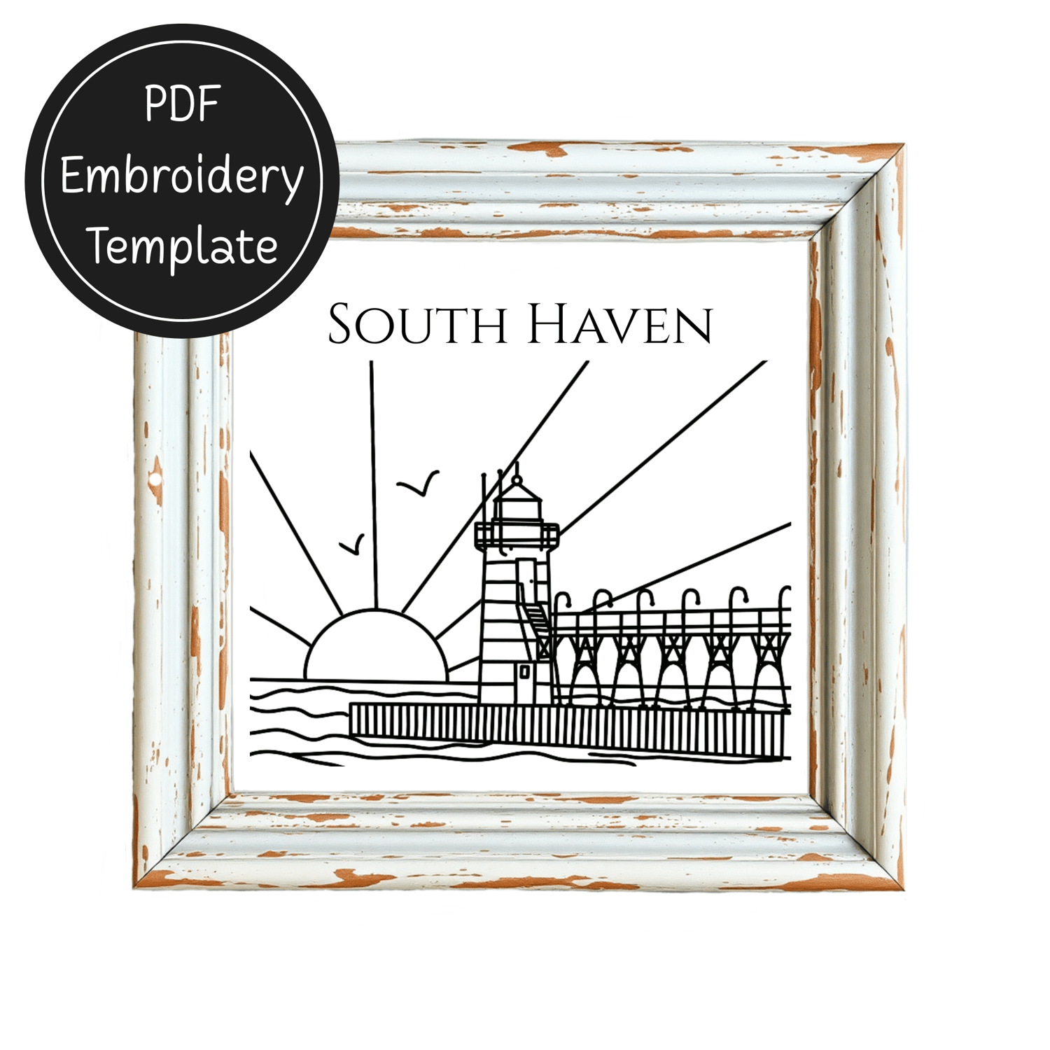 South Haven Lighthouse Embroidery Template PDF - DIY Lighthouse Series Design For Hand Stitching - Instant Download