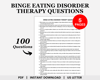 Designed to enhance client engagement and drive positive change, this therapy resource offers a collection of binge eating disorder therapy questions. Tailored to the principles of binge eating disorder, these therapy questions will guide your sessions towards productive conversations and transformative outcomes. These binge eating questions are made to elicit insightful responses and encourage clients to explore their goals and aspirations.