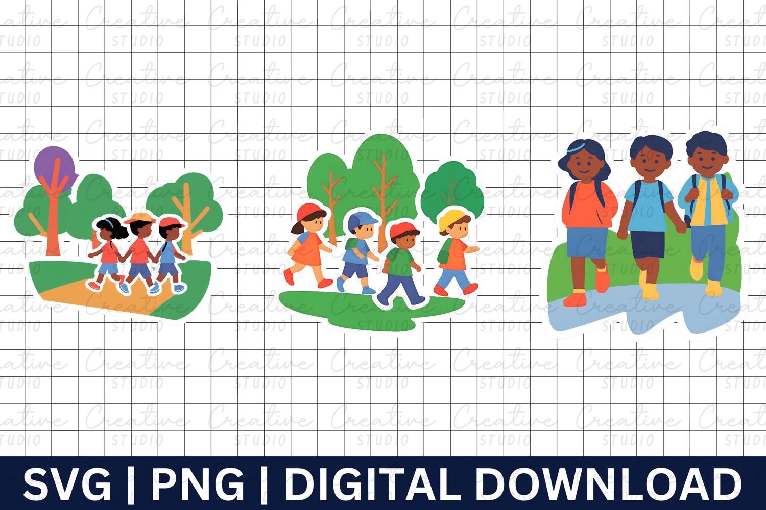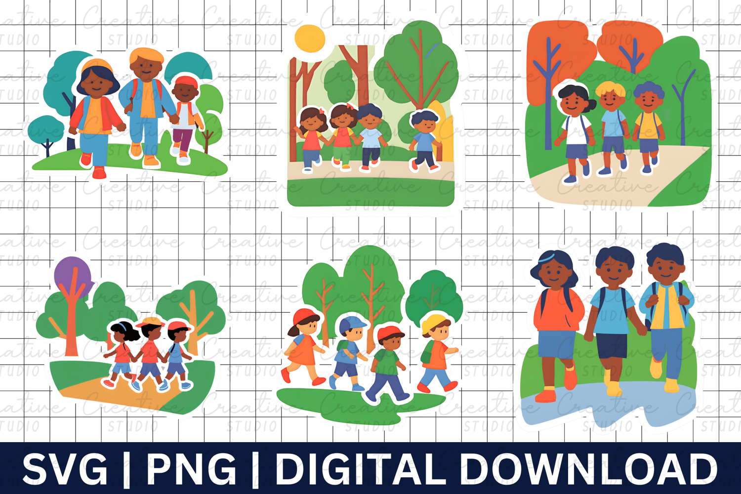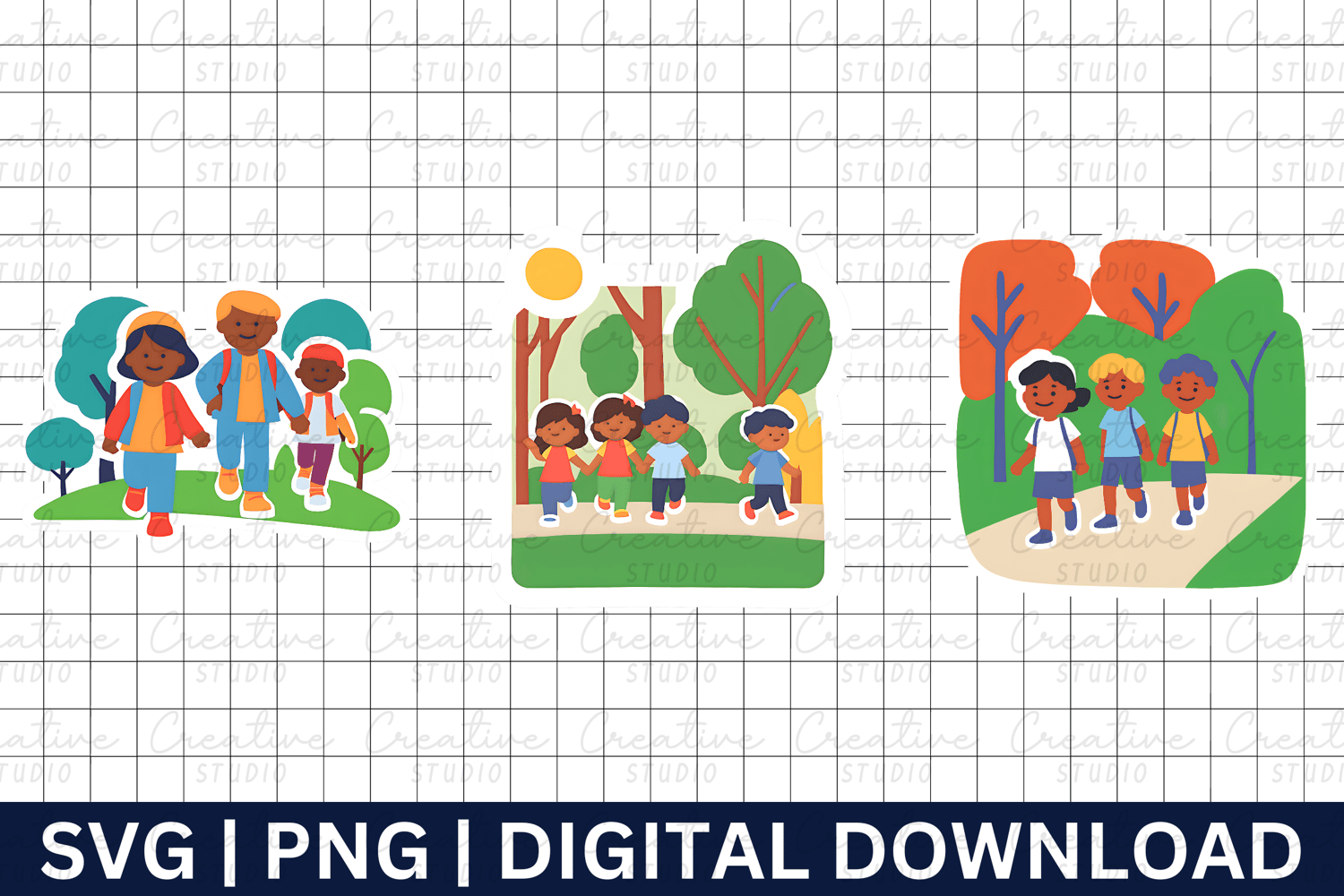 Kids Walking in a Park Clip Art Sticker Sublimation