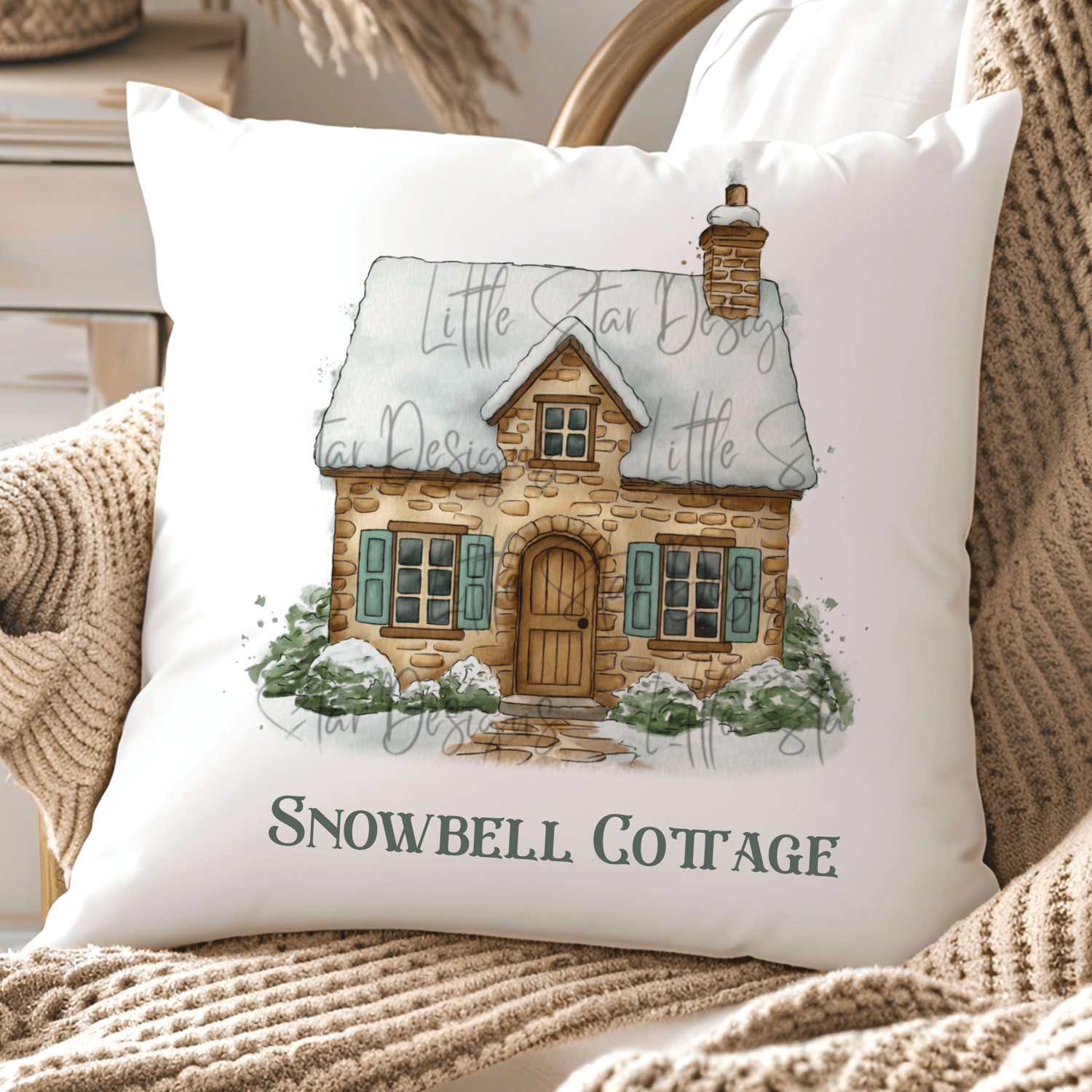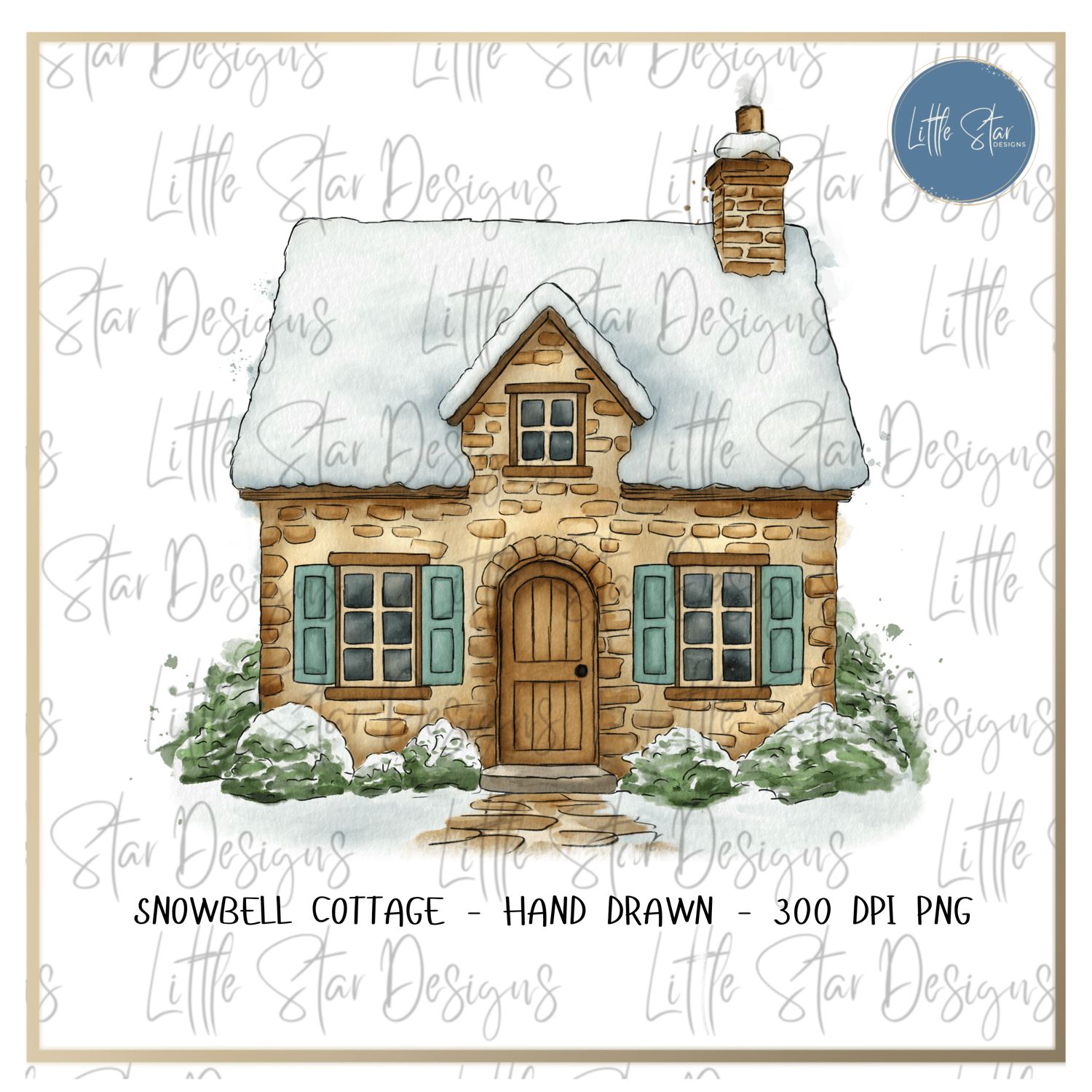 This is a high-quality hand drawn (300dpi PNG) digital download of my original artwork, titled 'Snowbell Cottage', designed for sublimation and print.
