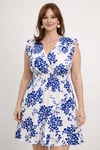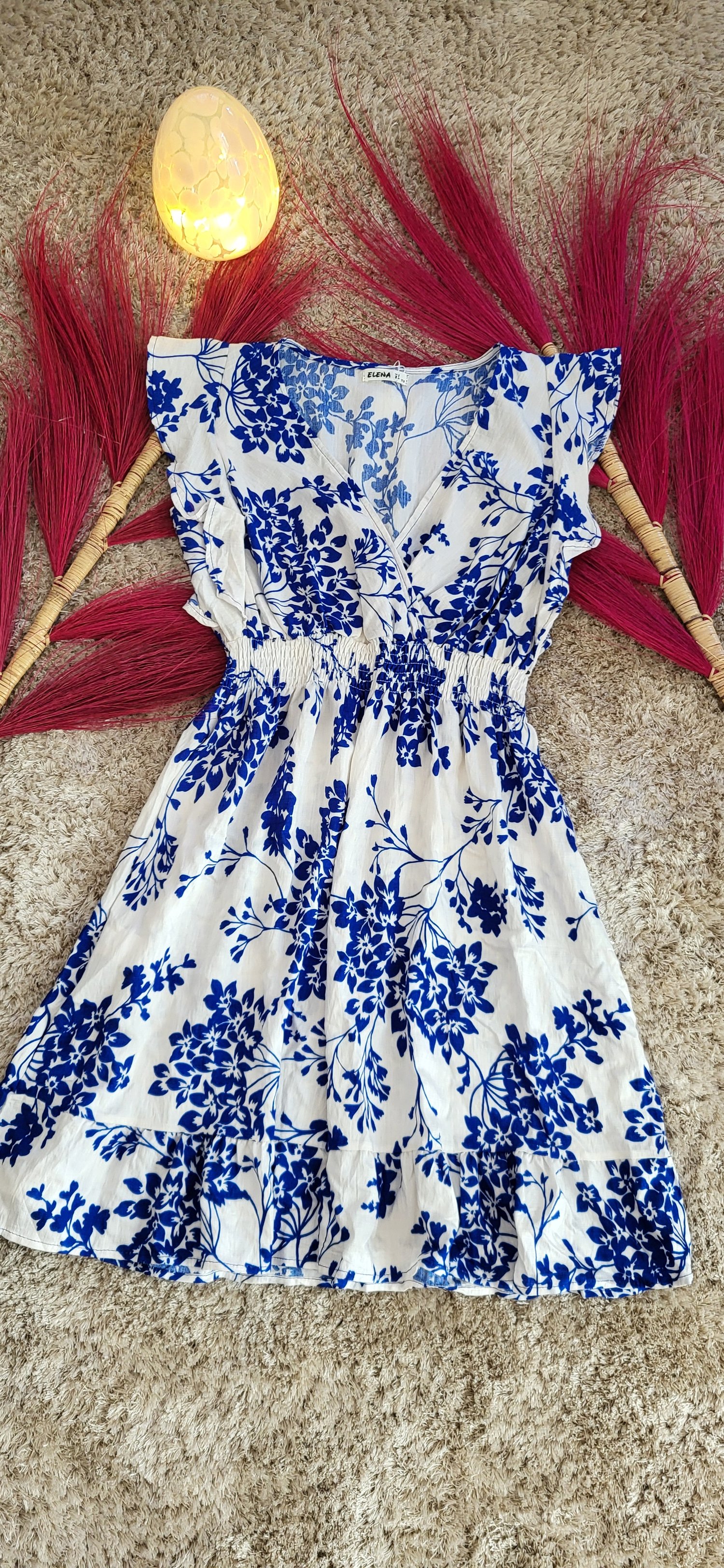 💙 Robe courte blanche & bleue – Manches volantées