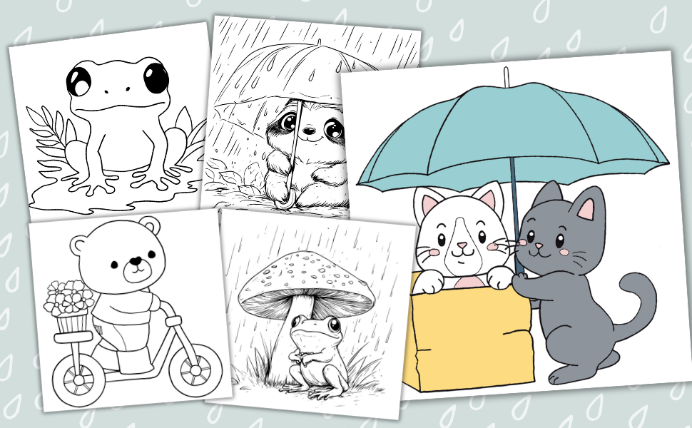 Whether you're an experienced colorist or just dipping your toes into the world of coloring, this collection is sure to bring calm and happiness to your creative moments. So grab your favorite colored pencils, settle into your coziest spot, and let the rainy-day vibes inspire you!
