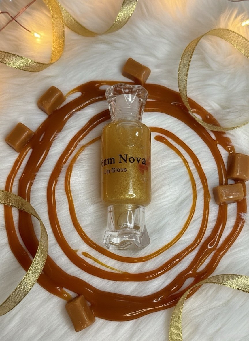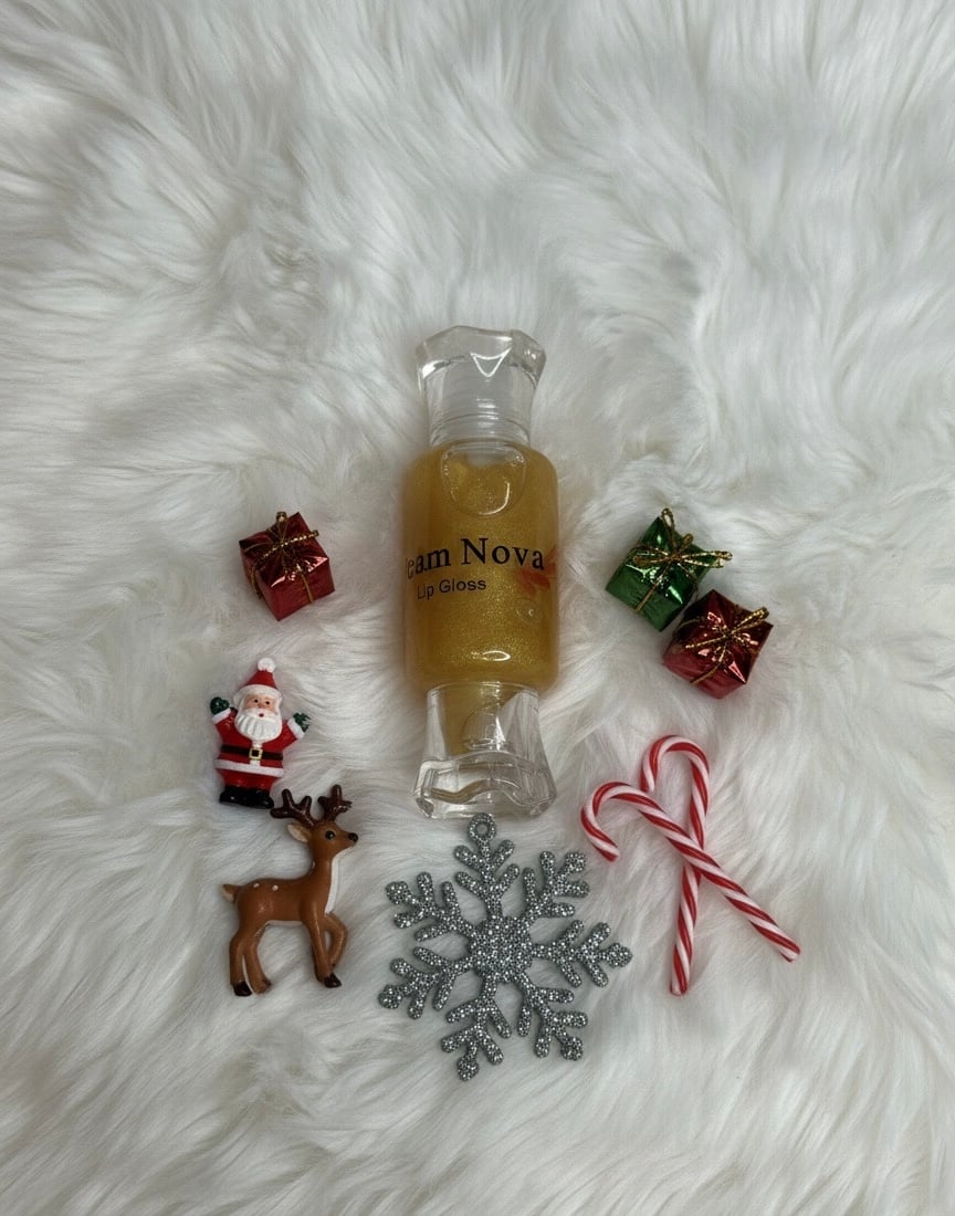 Wrap your lips in warmth with Holiday Caramel, a golden gloss inspired by cozy holiday treats.