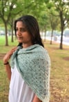 HANI is a classic top-down triangular shawl, knitted with a simple eyelet lace all over the body and finished with a picot edging.