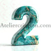 The number 2 marble blue green gold