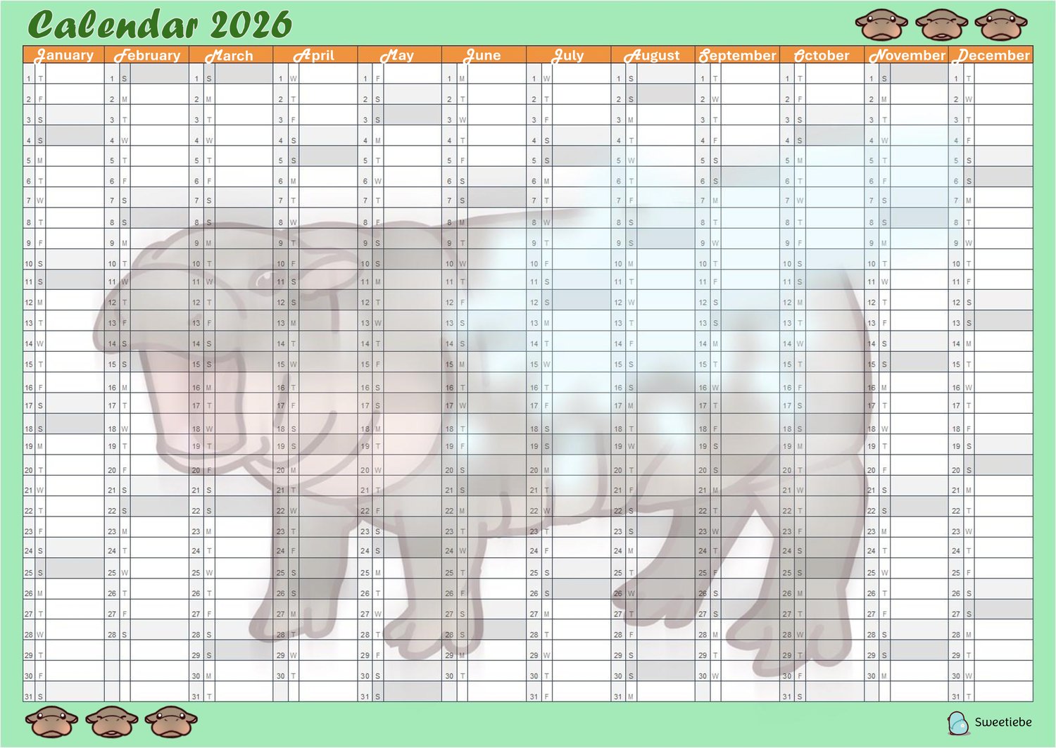 Make a splash in 2026 with this lovable hippo-themed yearly calendar planner! Featuring a cute and chubby hippo illustration, this single-page calendar is available as a PDF file for use on your digital devices or printing out to decorate your space. Whether you’re organizing important dates or enjoying its joyful design, this planner is perfect for hippo fans or anyone looking for a mix of fun and functionality.