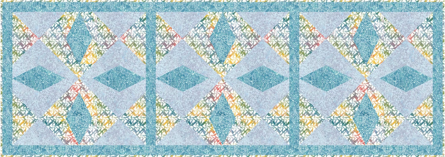 Whether you’re looking for a small tablerunner, or a larger tablerunner or bedrunner, this will work for you. The block is the same size, you can make one, or three, or however many you want. The smallest size has pointed ends, but you could do that with more than one block too. I recommend Deb Tucker's Studio 180 Design® V-Block ruler to make the diamonds. (The Diamond Rects would work too, but I don’t have that one…yet!) Templates are included.