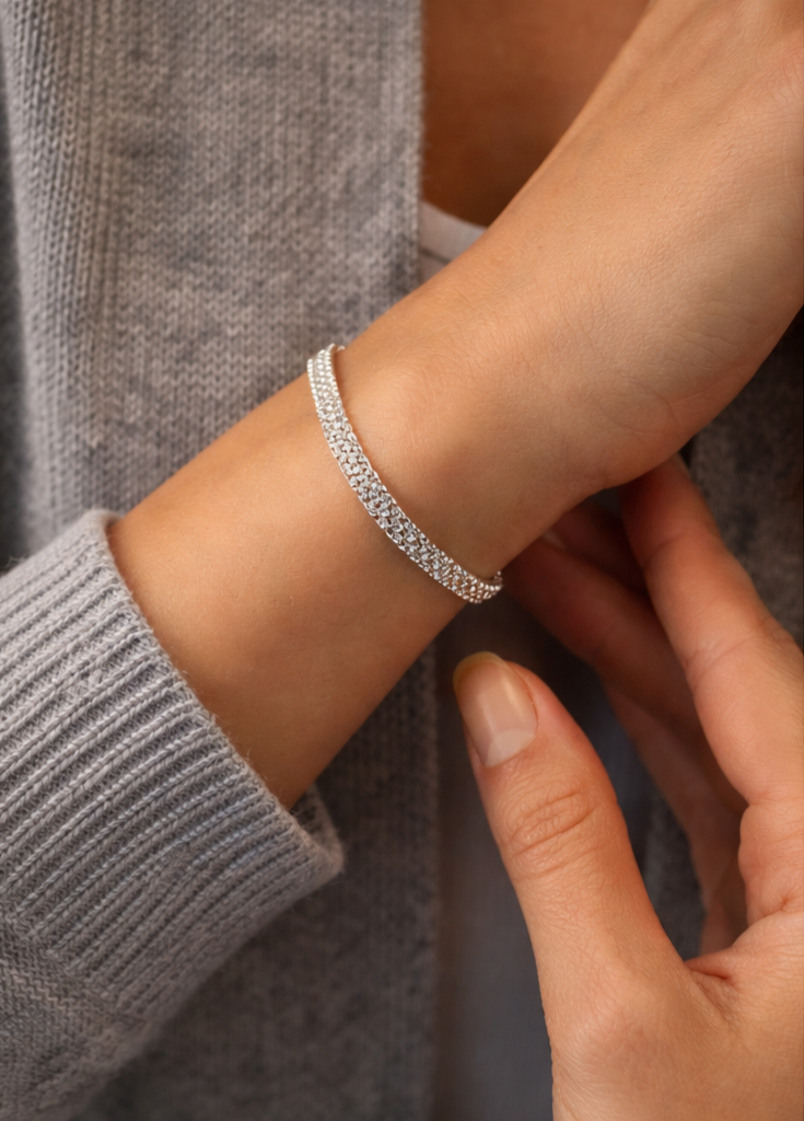 Lightweight and comfortable, this dainty silver bracelet is perfect for layering with other pieces or wearing alone for a minimalist statement. Whether styled with cozy sweaters, office wear, or a night-out outfit, it adds polished sophistication to any look.