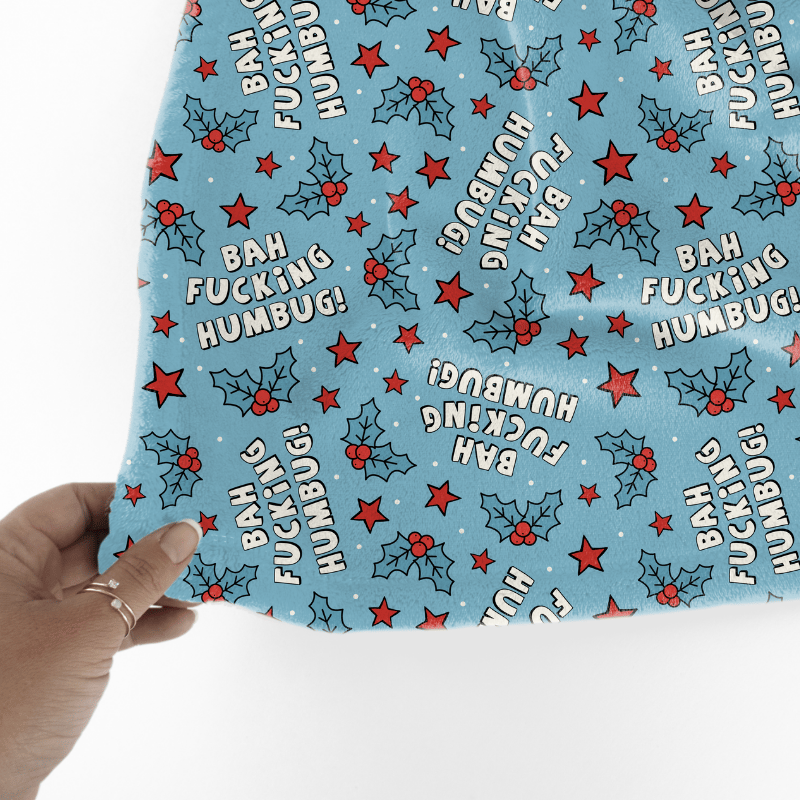 Bah Fucking Humbug! naughty Christmas pattern in blue.