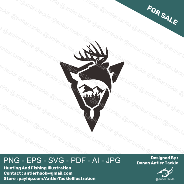 Deer Head Antler Mountain Broadhead Hunting Logo Exclusive License Designed By Donan Antler Tackle