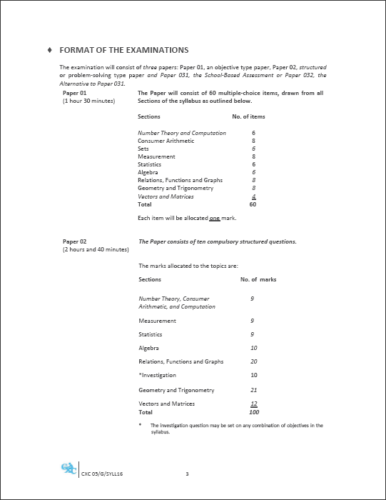 CSEC Mathematics Exam Format (2018 Syllabus). Copyright by Caribbean Examinations Council.