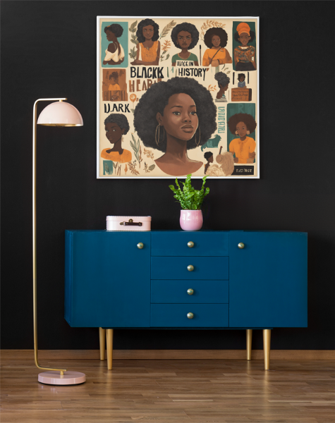Celebrate Black History Month with this bold Black woman design—perfect for wall art, T‑shirts, stickers, cards, and more.
