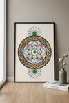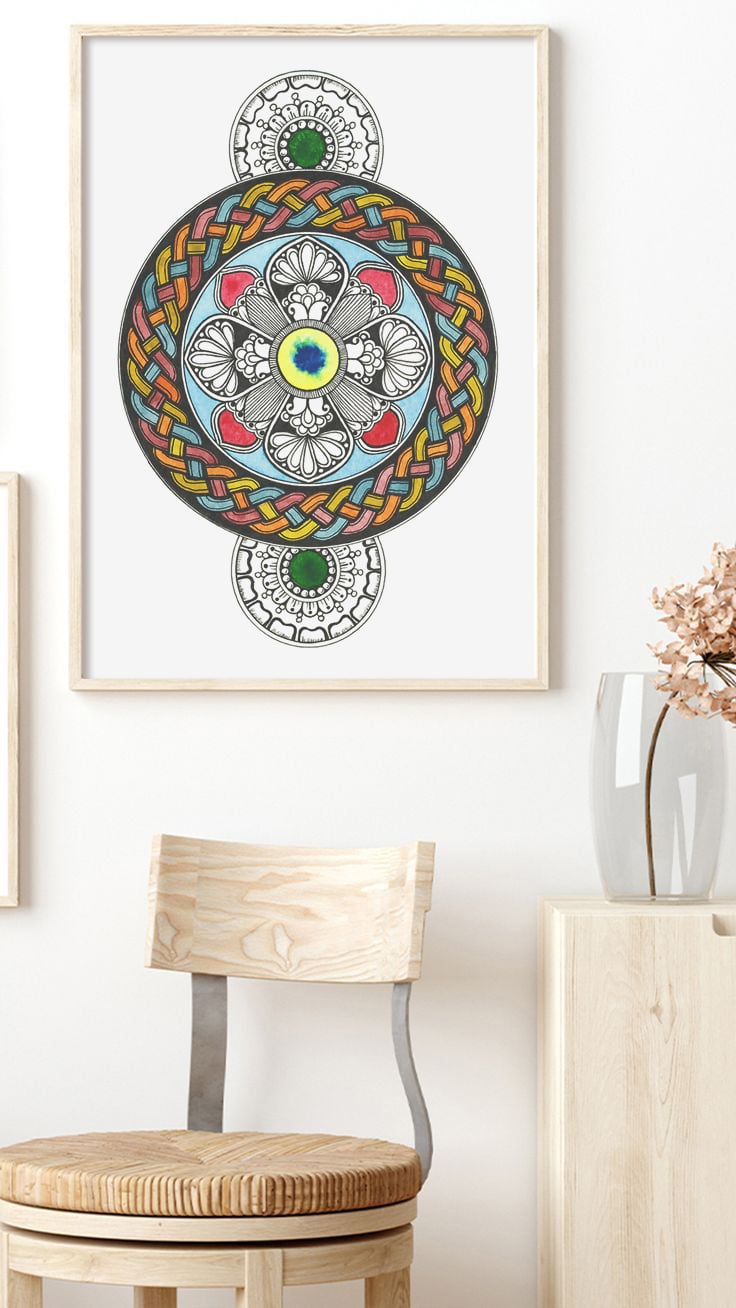 Celtic Knot Mandala Wall Art – Vibrant Geometric Hand-Painted Digital Print