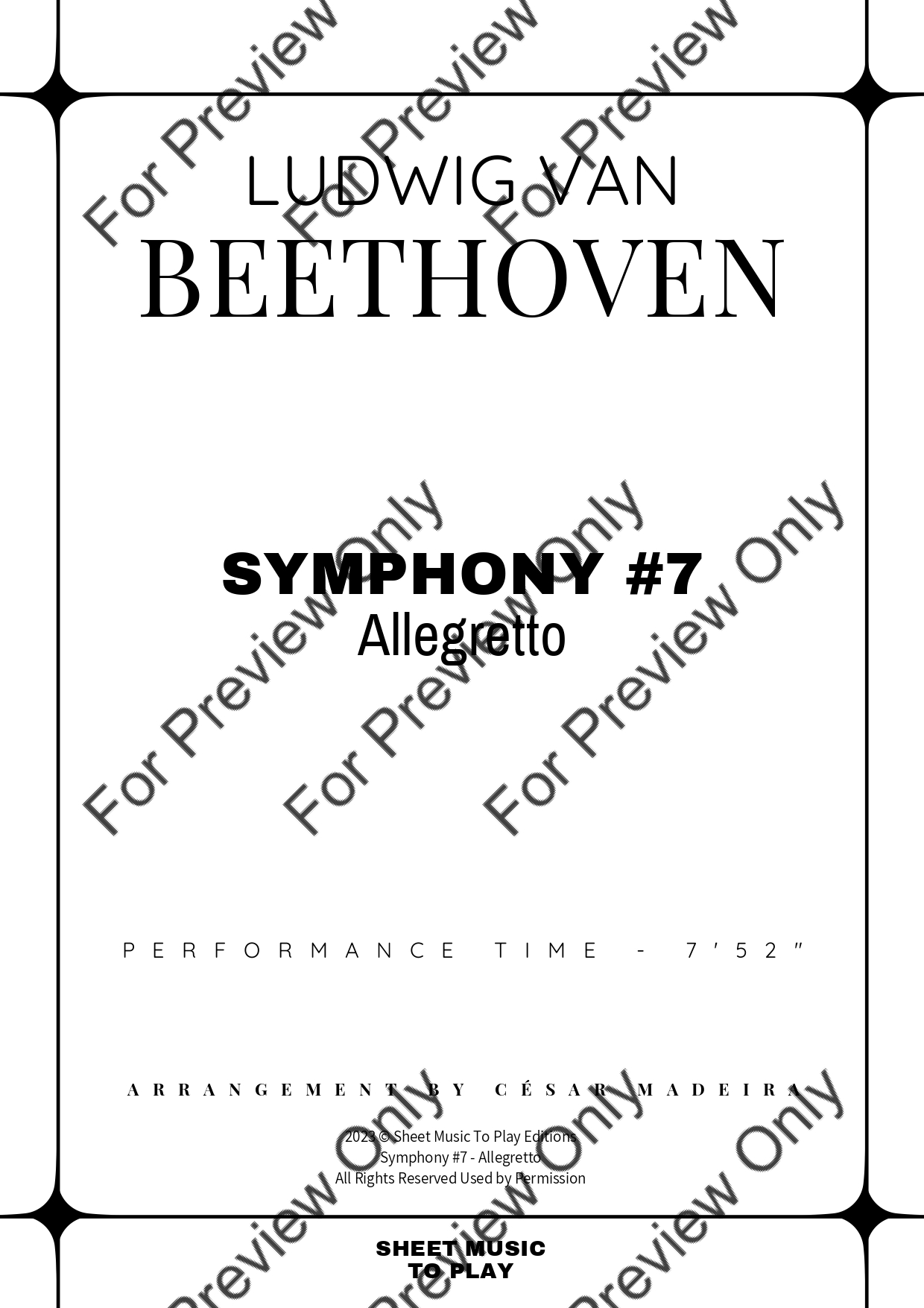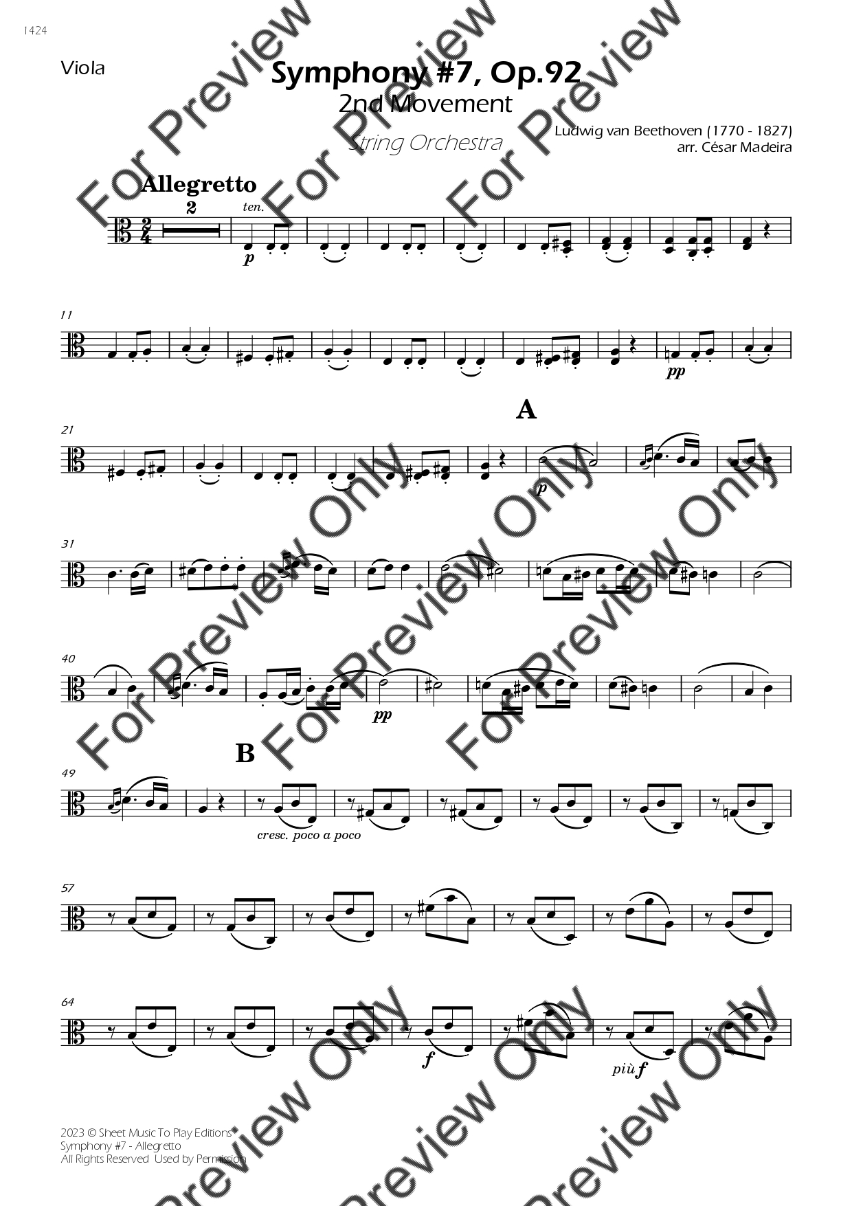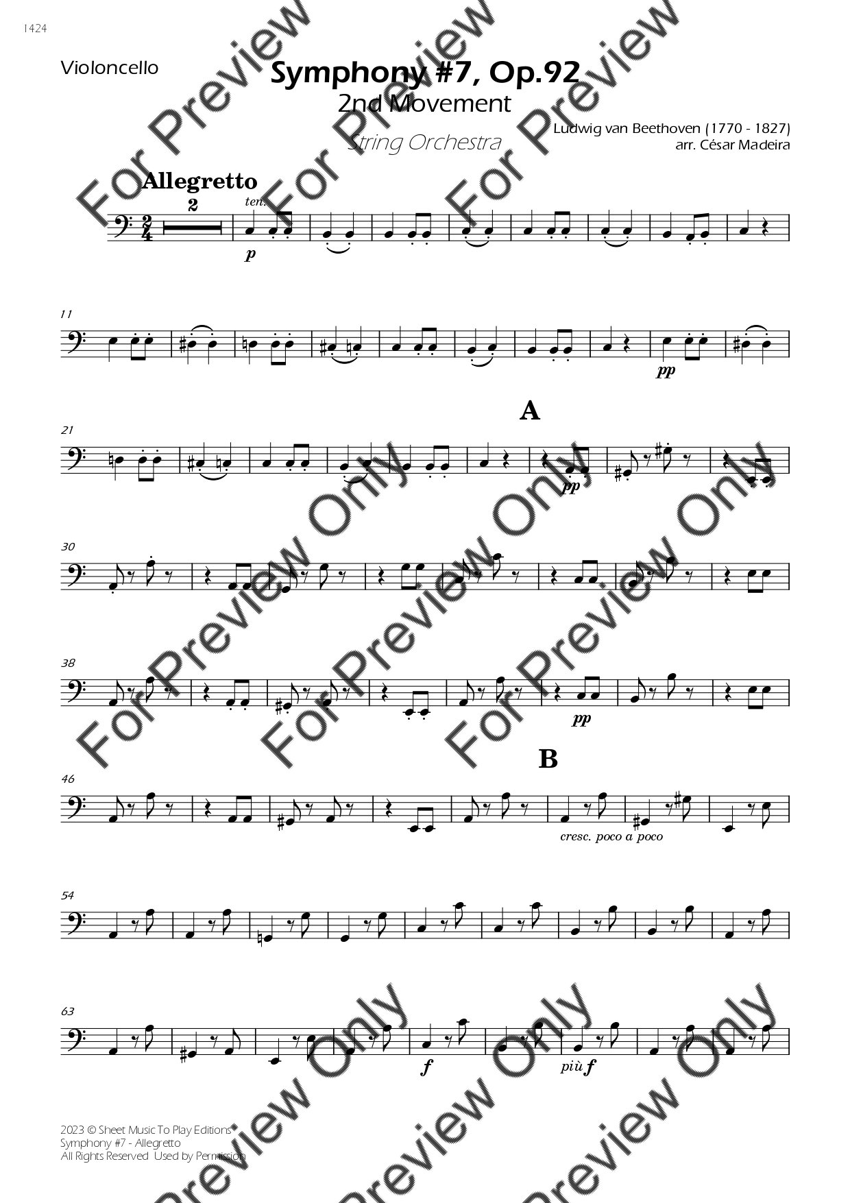 Symphony No.7 (2 mov. - Allegretto) by Ludwig Van Beethoven. Arrangement for String Orchestra - Violin 1, 2, Viola, Violoncello and Contrabass. With Full Score and Individual Parts. Have fun!
