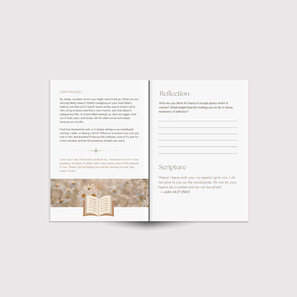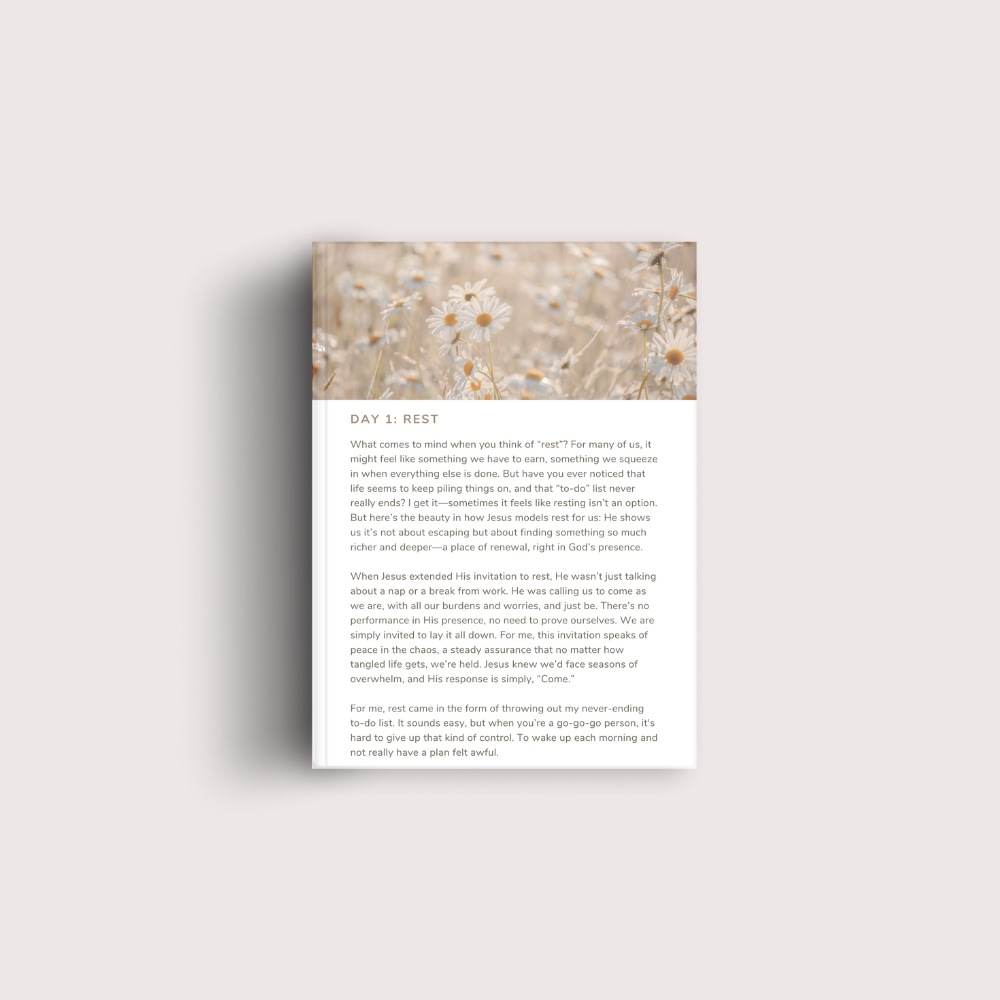 In the Rhythm of Jesus is a short 5-day devotional crafted to help you in beginning to embrace the peace, love, and purpose that Jesus modelled in His own life. Each day invites you to slow down and reflect on how Jesus lived—with intentional rest, constant prayer, deep love for the Father, compassionate interactions, and humble service. Through honest reflections, inspiring scripture, and heartfelt questions, you’ll be guided to cultivate a life that mirrors Christ’s rhythm and finds meaning in His footsteps.
