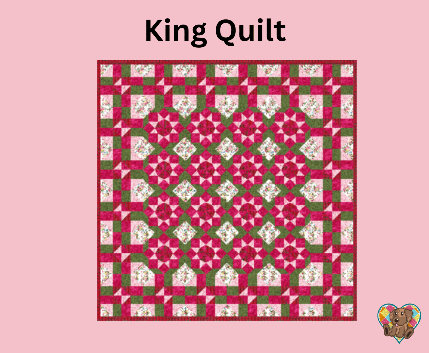 *Note: This pattern includes instructions for a lap (64.5" X 64.5"), twin (75.75" X 90"), queen (90" X 104.25"), and king (111" X 111") size quilt.* Blocks are traditional pieced blocks.
