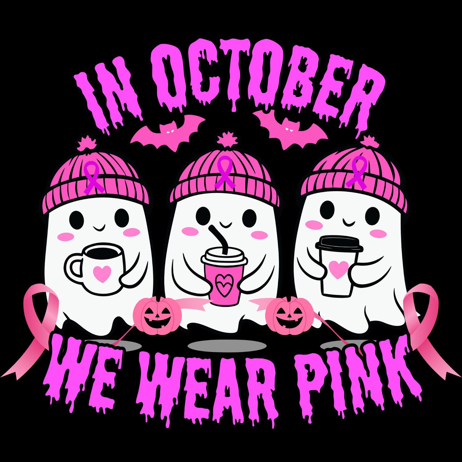 . Another example is the "In October We Wear Pink" bundle, which includes various designs incorporating pink ghosts, pumpkins, and ribbons, suitable for apparel and other merchandise