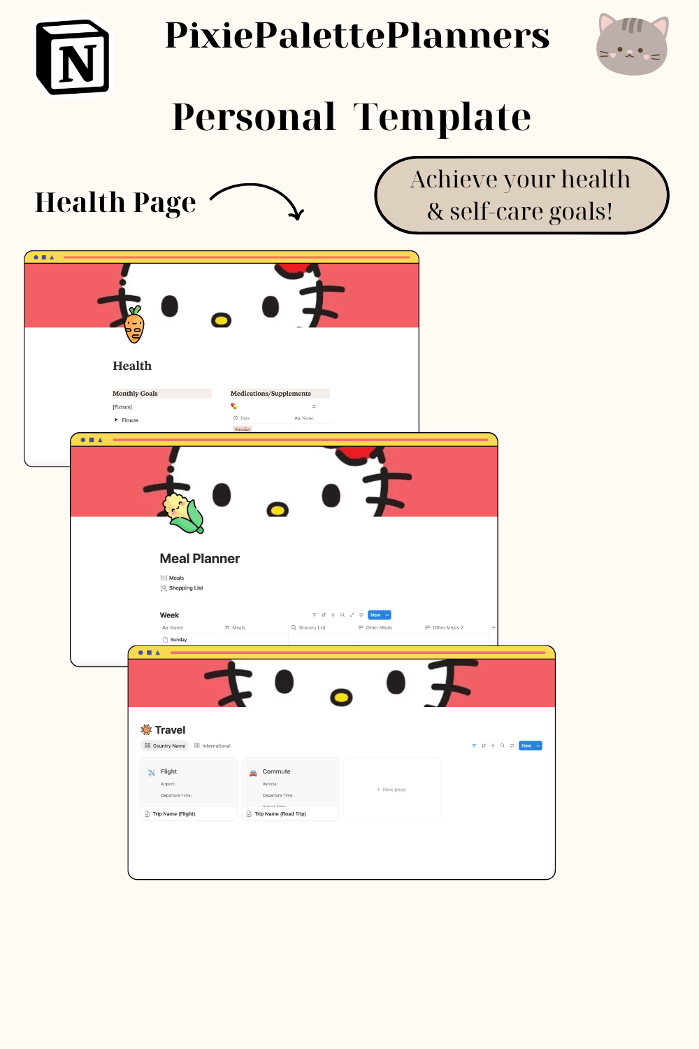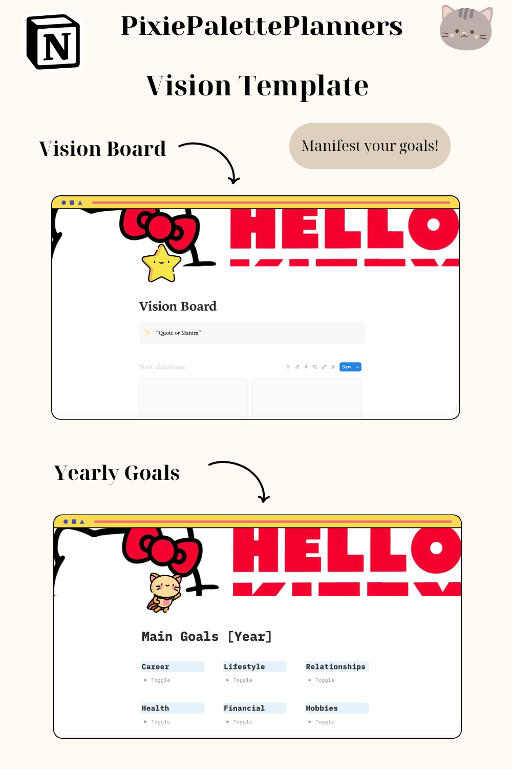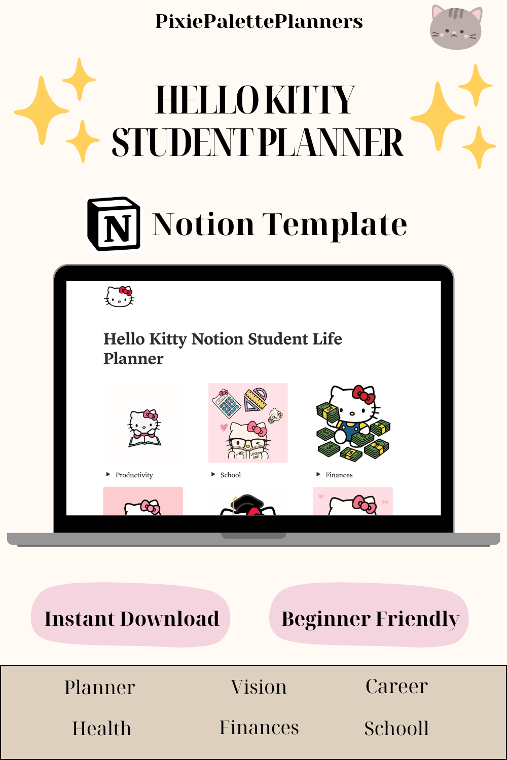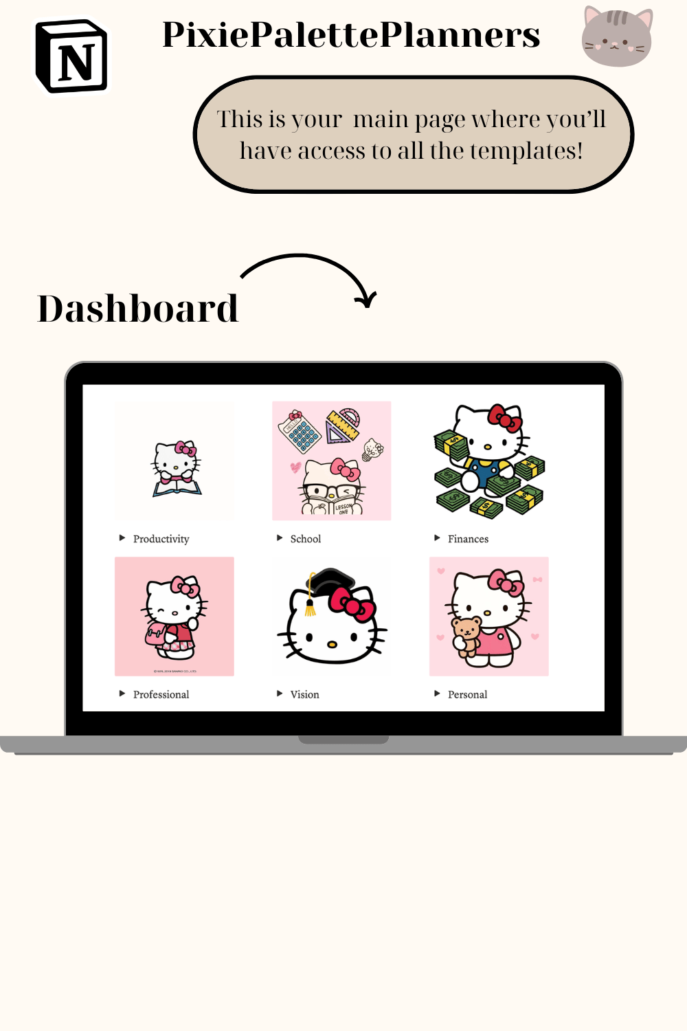 Hello Kitty Notion Template | Aesthetic Academic Planner, Student Dashboard, Assignment Tracker, Study Planner, Notion Digital Planner