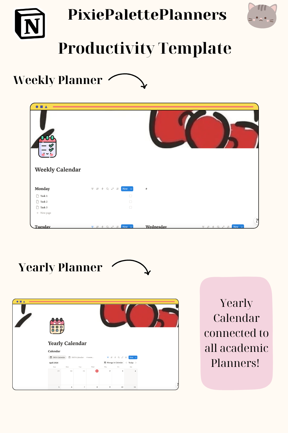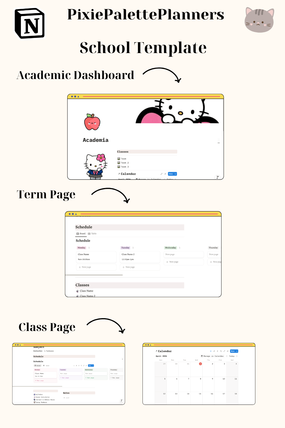 Stay cute & organized all semester or quarter long! This aesthetic Hello Kitty Notion Template is the ultimate academic planner designed for students who want to stay on top of their studies without sacrificing their aesthetic. Whether you're in high school, college, or university — this kawaii digital planner is your new best study buddy! 🌸