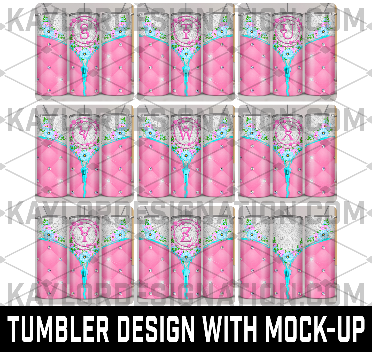 Glam Zipped Letters/ All 26 Letters -20oz Skinny Tumbler Templates With Mock-Ups