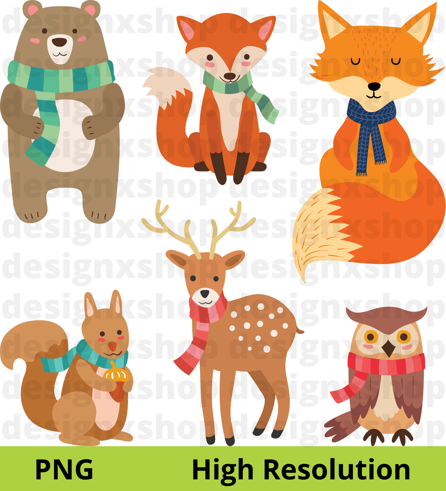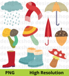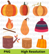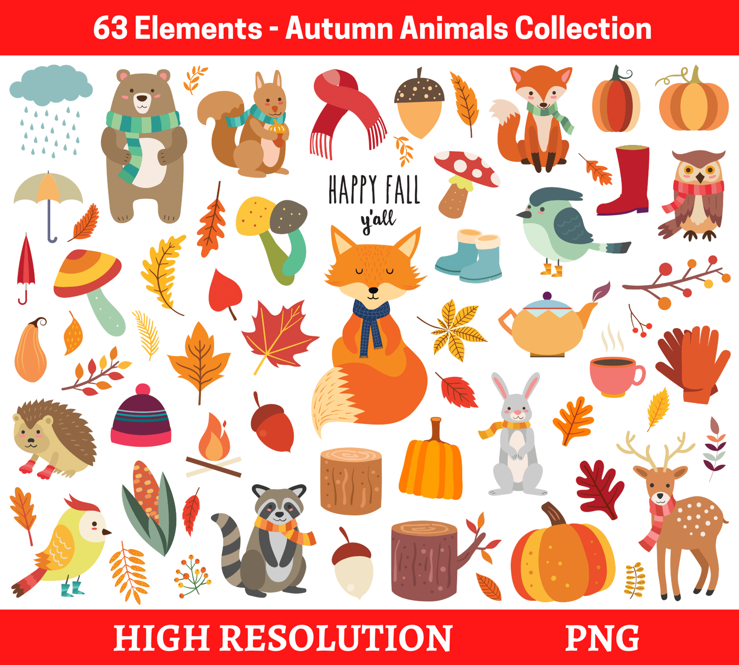 63 Elements - Autumn Animals Collection, hi-res digital CLIP ART (with transparent background).
