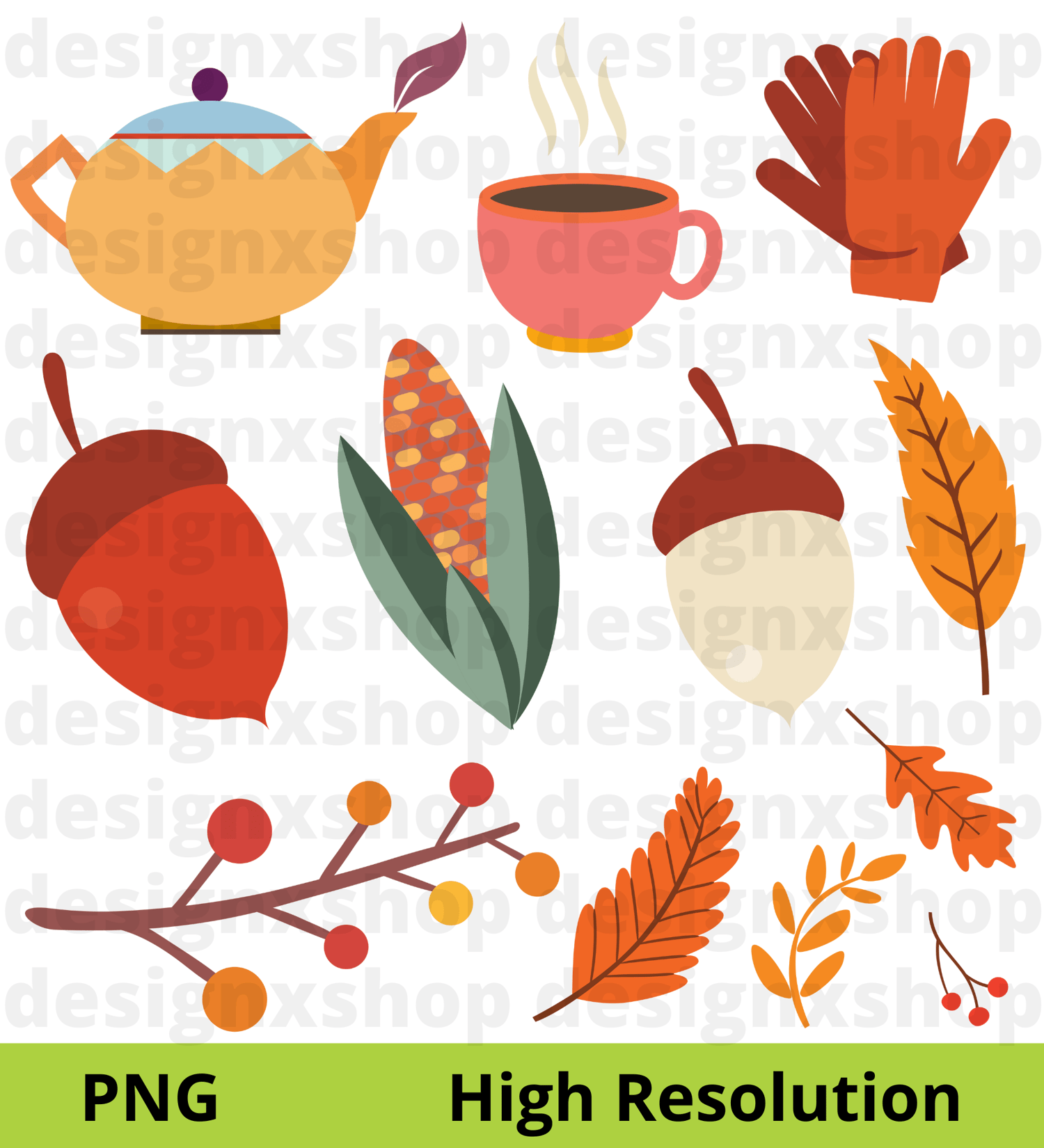 Each clip art element is saved separately as a 600 dpi PNG Images & SVG Files.