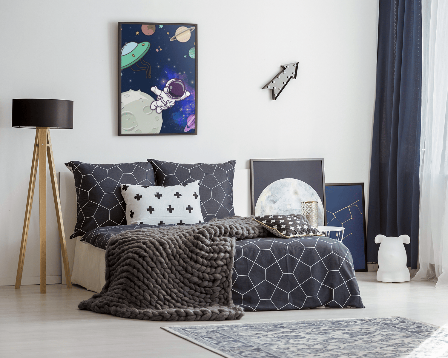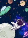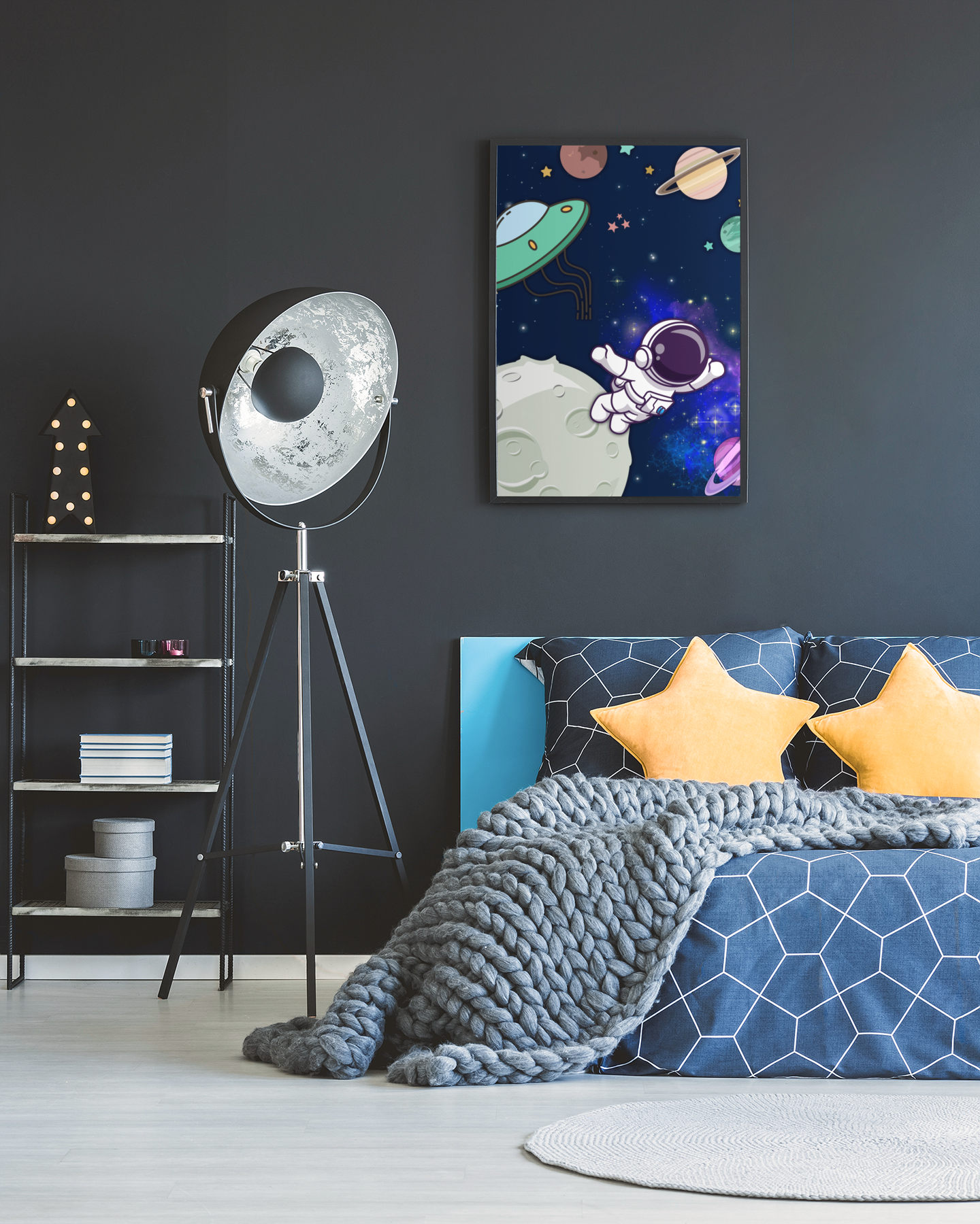 A lone astronaut exploring space — a bold and imaginative piece for kids who love the stars..