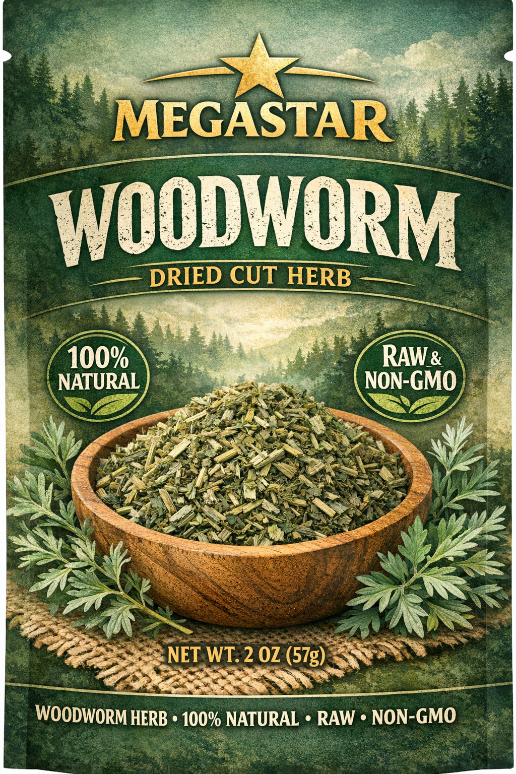 Each package includes 2 ounces (57g) of dried cut woodworm herb, sealed fresh to maintain quality from the source to you.