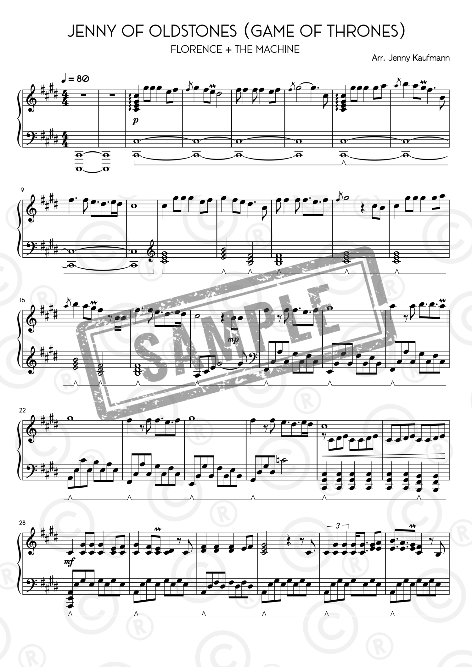 Piano sheet music and midi – Jenny of Oldstones by Florence and the Machine