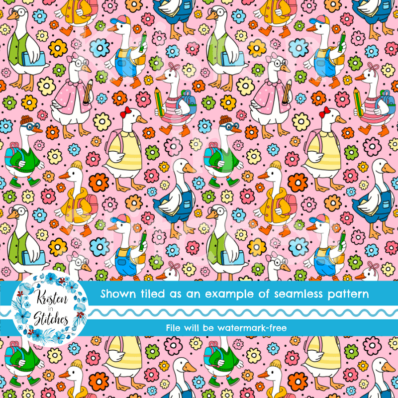 Back to School Silly Goose Seamless Pattern Pink