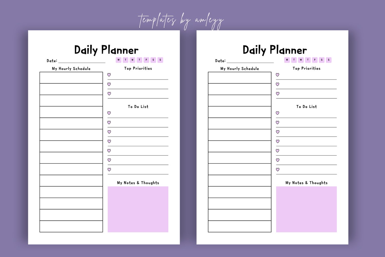 Aesthetic Daily Planner Template (Canva) - Minimalist Lavender Hourly Schedule & To-Do List Printable